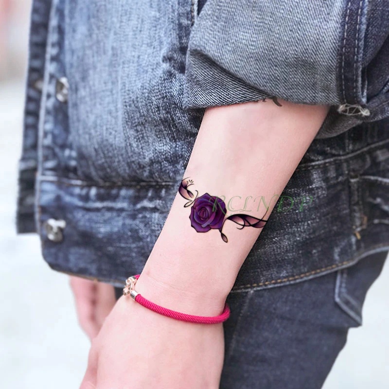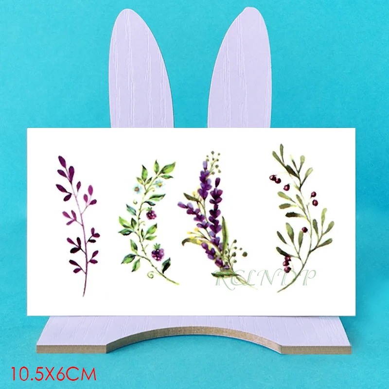 Водостойкие Временные татуировки, наклейки с фиолетовыми цветами, листьями лаванды, растениями, флэш-тату, поддельные татуировки для девочек, женщин, детей