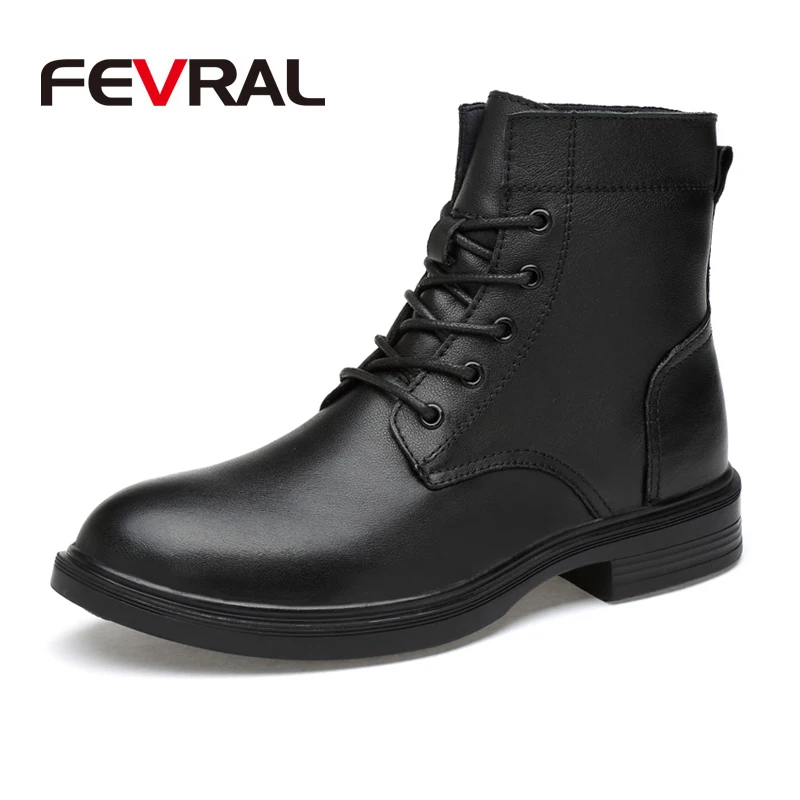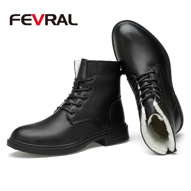FEVRALНовые мужские ботинки; Сезон осень-зима; Кожаные теплые зимние ботинки в байкерском стиле с мехом и плюшевой подкладкой; Классические мужские повседневные ботильоны в винтажном стиле