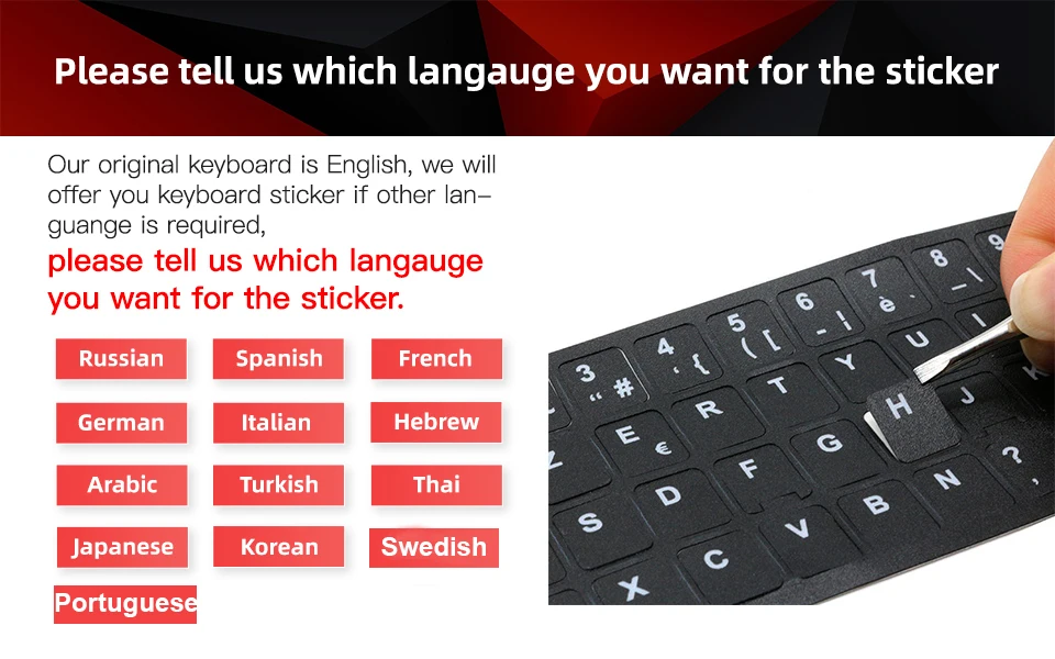 Клавиатура на английском языке, мы вышлем нижеперечисленные наклейки на клавиатуру в подарок.