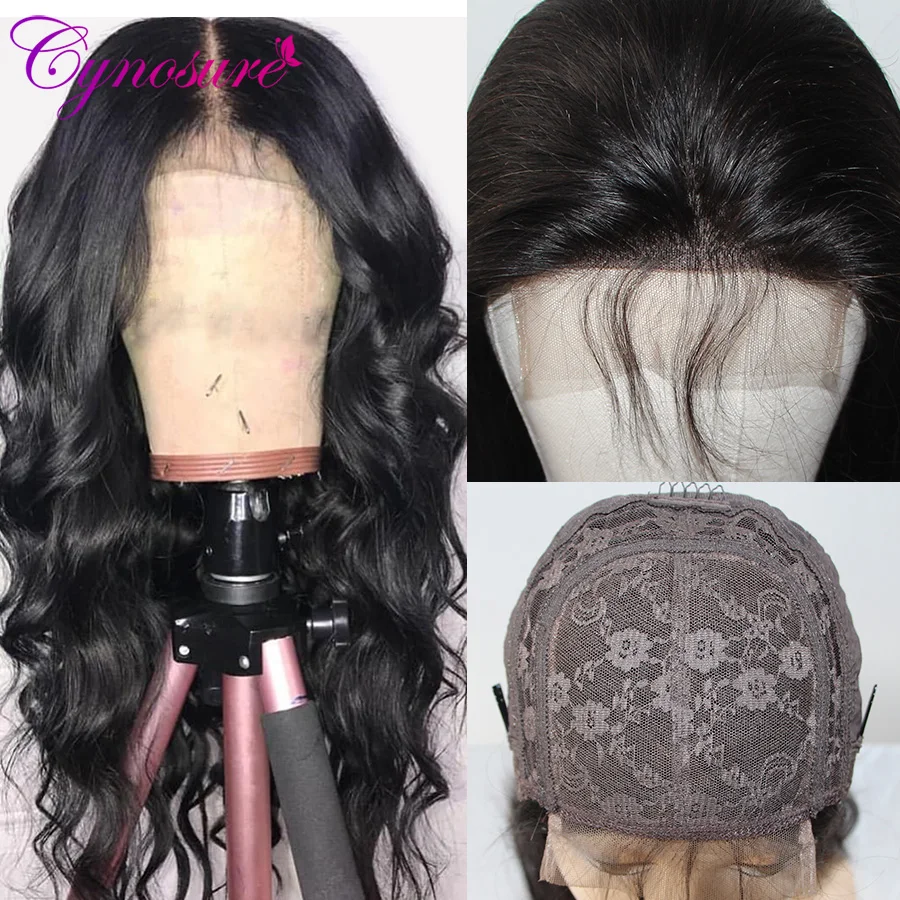 Парики Cynosure 4x4 на сетке, волнистые, предварительно выщипанные Детские волосы для чернокожих женщин, бразильские парики Remy на сетке, парики из человеческих волос