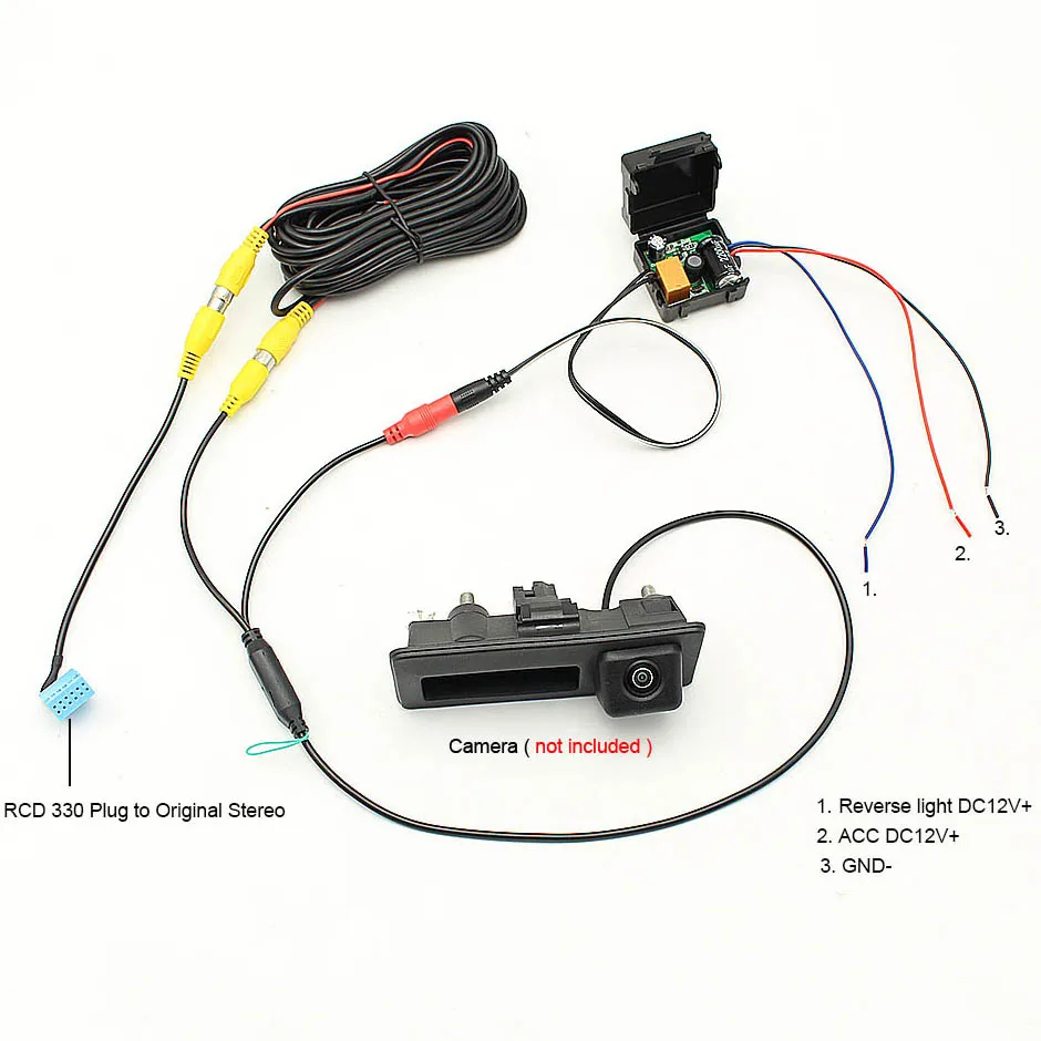 Автомобильная камера заднего вида 2 в 1, питание реле таймера задержки, выпрямитель фильтра, RCD330 PQ MIB RCA, переходник для VW, BMW, BENZ, Audi
