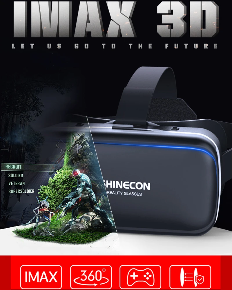 Гарнитура VR shinecon 6,0 editionОсобенности: 1. Материал: АБС + 40 мм полимерные линзы; 2. Объектив: асферическая оптическая линза, высокая пропускаемость; 3. Формат видео: левый и правый 3D ; 4. FOV: 100-120 ° 5. Вес: 450 г; 6. Фокусное расстояние: регулируемый; 7.IPD: Регулируемый 8. Цвет: черный 9. Лицевая панель: флокированная ткань + губка + липучка; Он может быть заменен 10. Подставка для телефона: 4,0-6,53 дюймовыйж смартфон; 11. Аксессуар: салфетка для очистки очков, руководство пользователя 12. Подходит для: 0-600