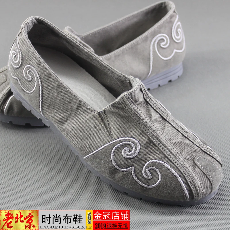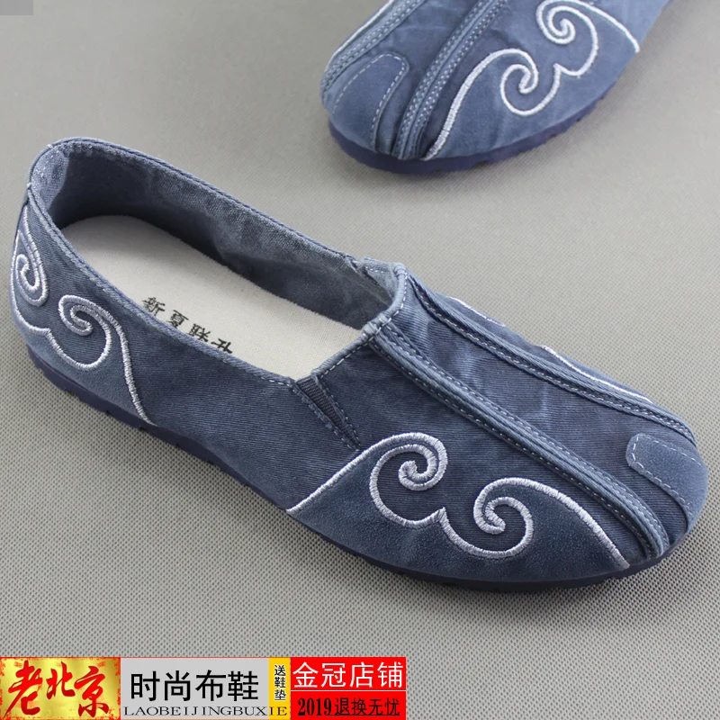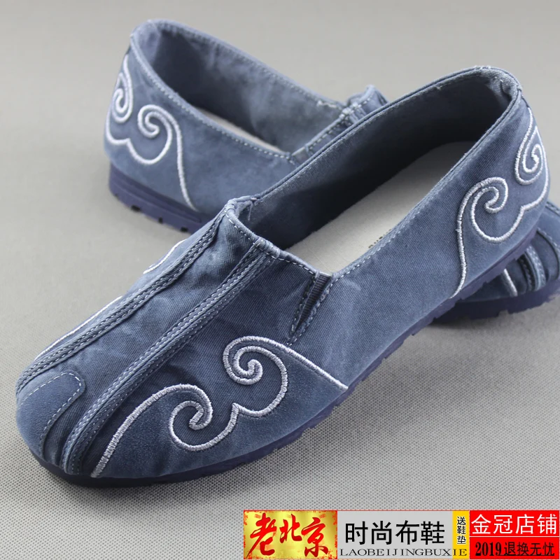 Новинка лета 2021, стильные мужские одиночные туфли, старые Пекинские тканевые туфли, джинсовая парусиновая обувь + стелька ручной вышивки, Лидер продаж BJING-03