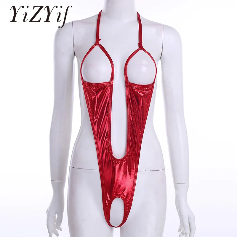 Женское сексуальное нижнее белье, слитный купальник, лакированная кожа, открытый бюст, открытая спина, боди с открытой промежностью, костюмы, ночное белье