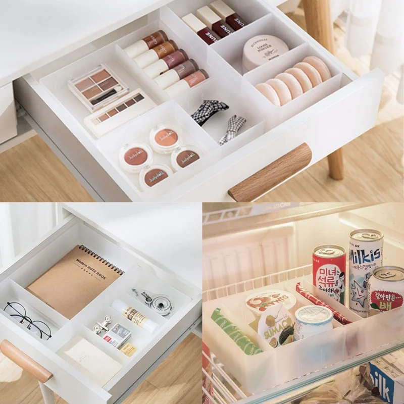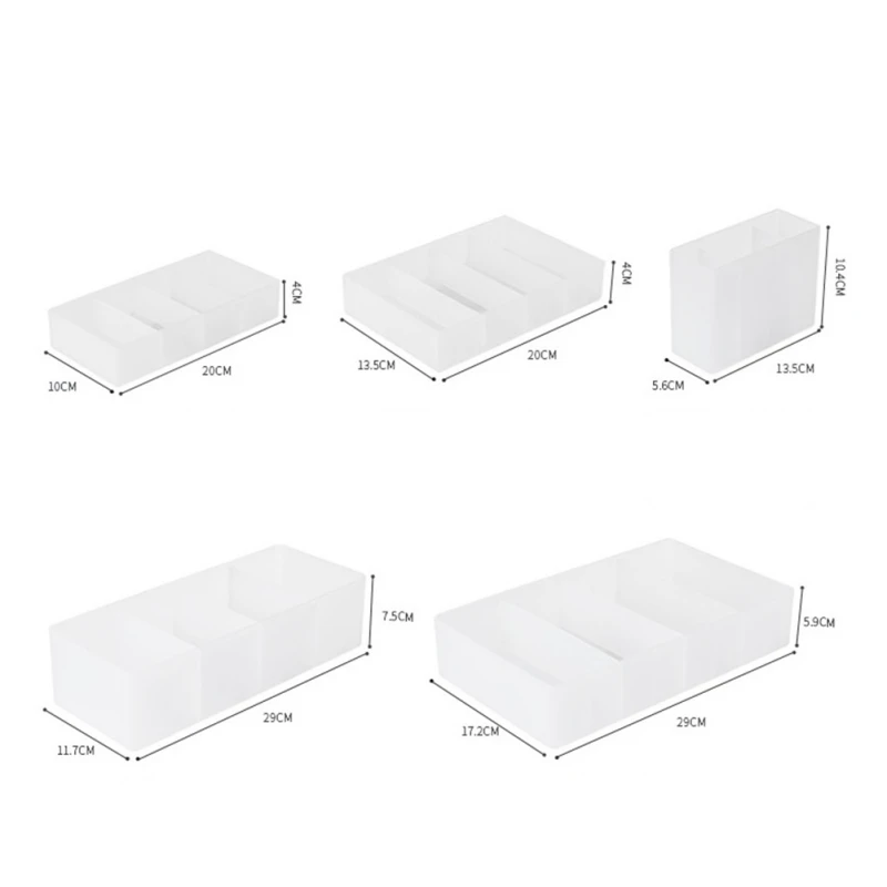 Описание: Материал: полипропилен Размеры: A:20x10x4 см; B: 13,5x10,4x5,6 см; C:20x13,5x4 см; Диаметр: 29x11,7x7,5 см E:29x17.2x5.9 см Цвет: прозрачный матовый белый Количество: 1 косметическая коробка для хранения Особенности: 1. Мульти-спецификации и Гибкая комбинация. 2. Перегородка съемная и может регулироваться независимо, чтобы удовлетворить различные потребности в хранении. 3. Свободно Штабелируемый для использования, экономя пространство. 4. Раздел отмечен стрелками и сборка проста и проста. 5. Применимые случаи: Хранение Косметики, хранение канцелярских принадлежностей, хранение закусок и т. д. 6. Примечание: в дополнение к модели C, есть 2 перегородки, а остальные оснащены 3 перегородками. Посылка включает в себя:1 косметический ящик для хранения Примечание: Размер ручного измерения может иметь некоторую погрешность, он находится в пределах ± 1 см, фактический размер должен зависеть от фактического объекта. Из-за различных условий освещения и съемки цвет изображения может отличаться от фактического продукта. Пожалуйста, ознакомьтесь с фактическим товаром.