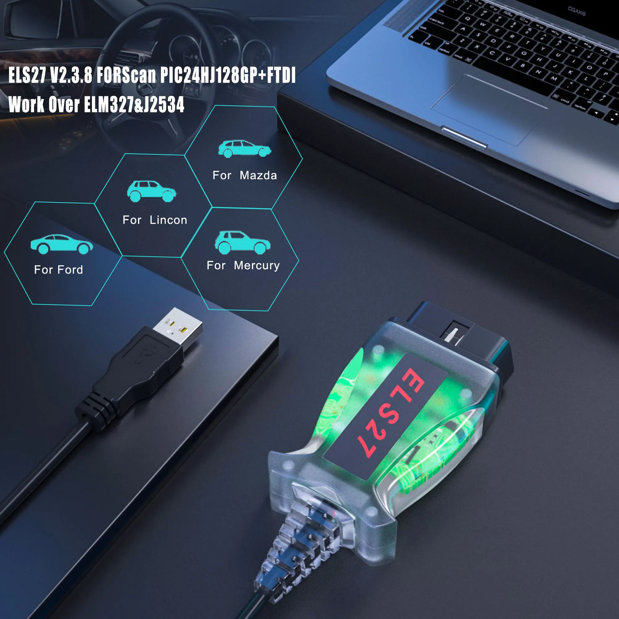 Сканер ELS27 V2.3.8 FORScan для автомобилей MazdaForLincoln, сканер ELS27 FORScan OBD2, диагностический кабель с поддержкой ELM327 J2534