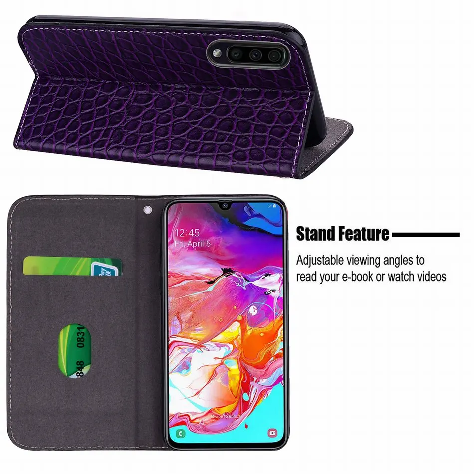 Магнитный чехол-книжка с крокодиловым узором для Samsung Galaxy A6 Plus A7 A8 2018 A20E A2 Core A20 A30 A40 A50 A70, блестящий чехол для телефона D11G