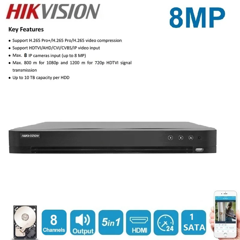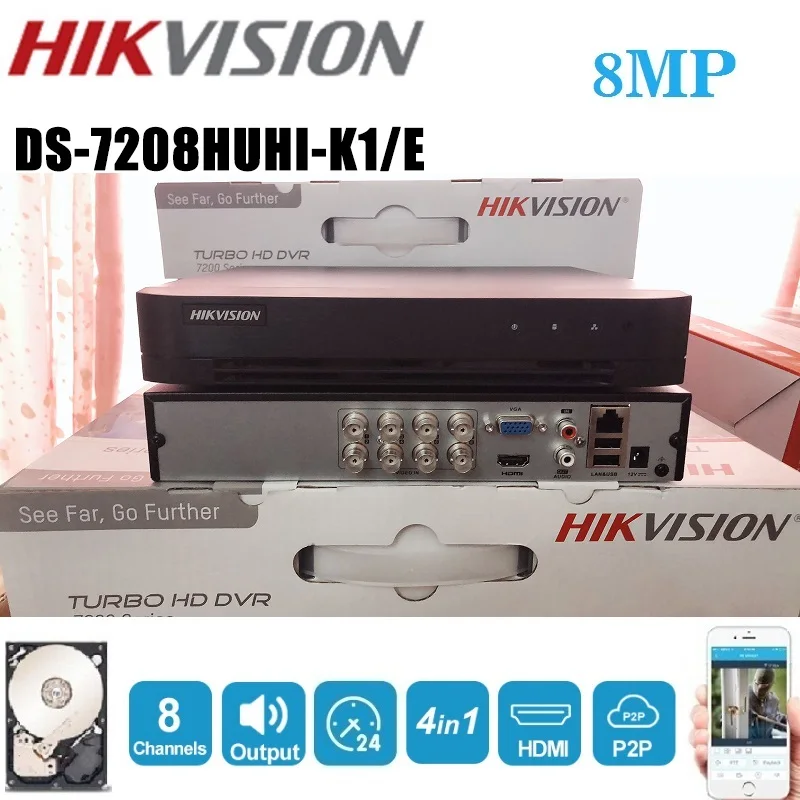 Видеорегистратор для аналоговой камеры, обновленный, оригинал, английская версия 8chDS-7208HUHI-K1E, 5 в 1, AHD, CVI, TVI, CVBS, IP, 8 МП