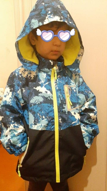 Доставка до Воронежа 20 дней. Внутри флис, снаружи что то водоотталкивающее. Неплохая куртка за 980р. Размер М -7- ростовка 120 написано, на ребенка 2.3 великовата, на вырост как раз...рукава см на три всего длинны...У нас куртка наподобии, брала за 2300, немного другой материал, но насмену эта прям очкнь хорошо, хоть и думала будет потолще ткань...