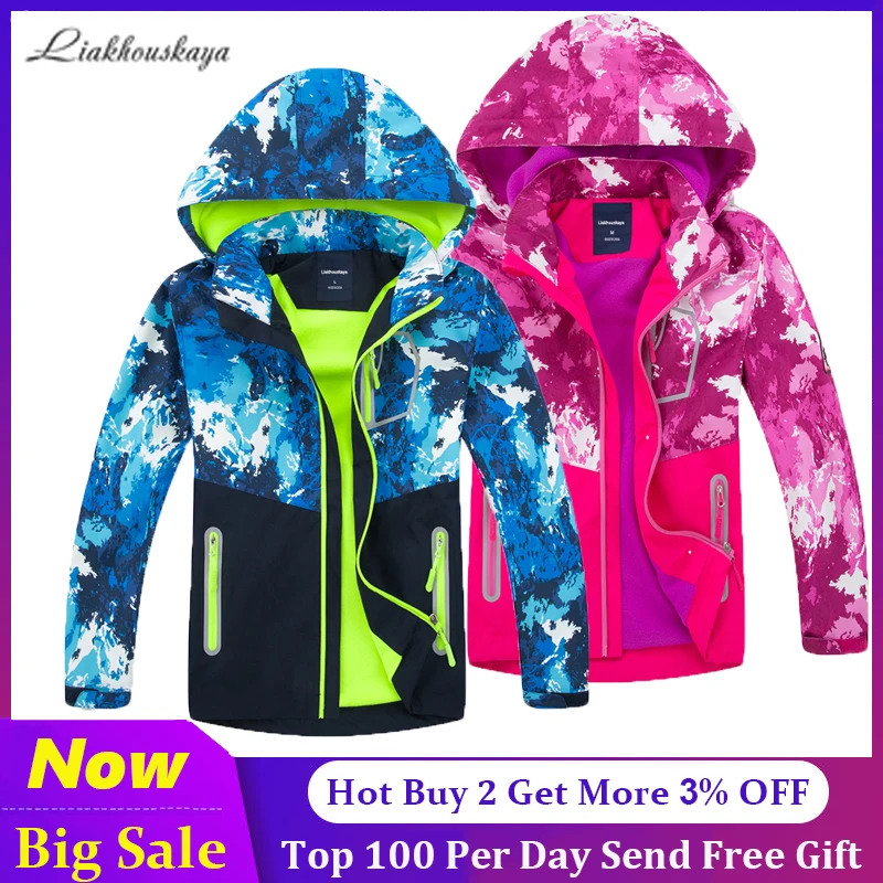 Детская ветрозащитная флисовая куртка с капюшоном, на веснуосень
