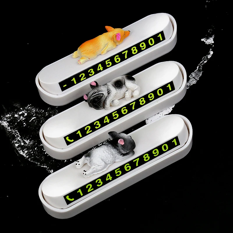 Автомобильный номер телефона, светящийся в темноте бульдог, карточка с телефоном для временной парковки, наклейка для автомобиля
