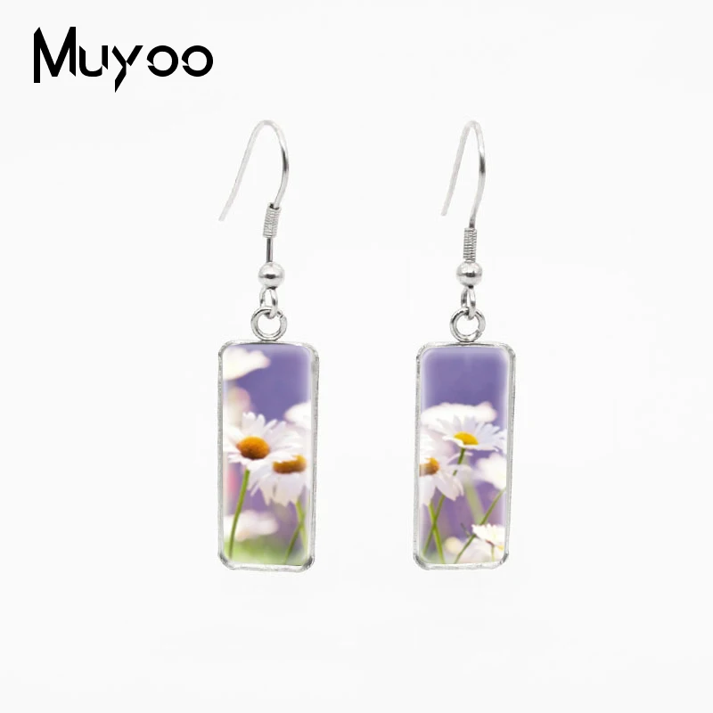 Элегантные красивые цветы, свежие узоры, квадратный узор, дизайнерские стеклянные серьги с кабошоном, рыболовные крючки, милые цветы, ювелирные серьги