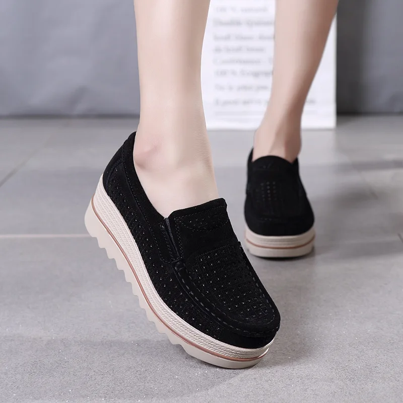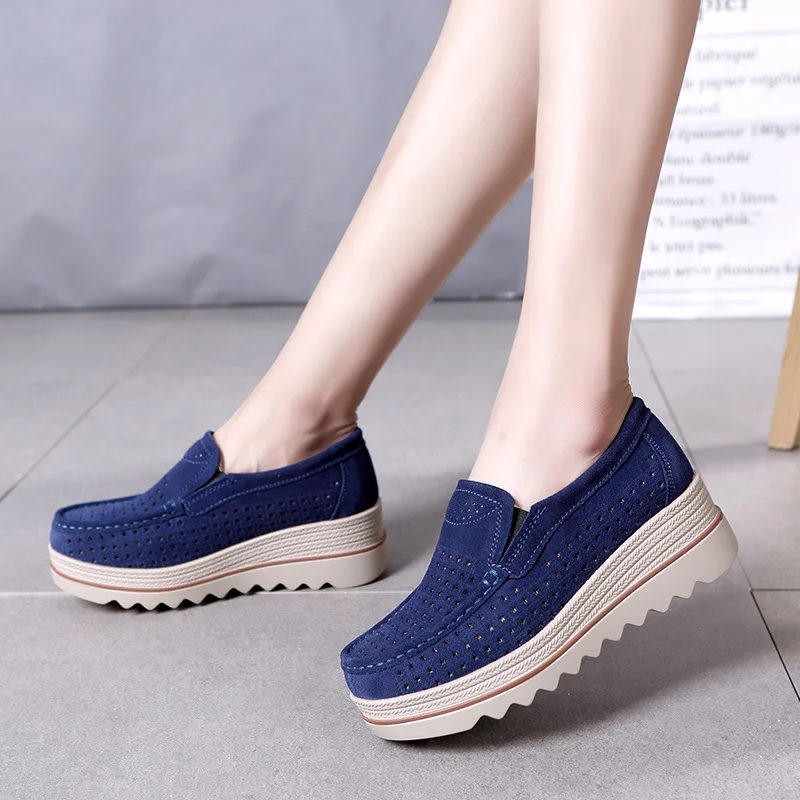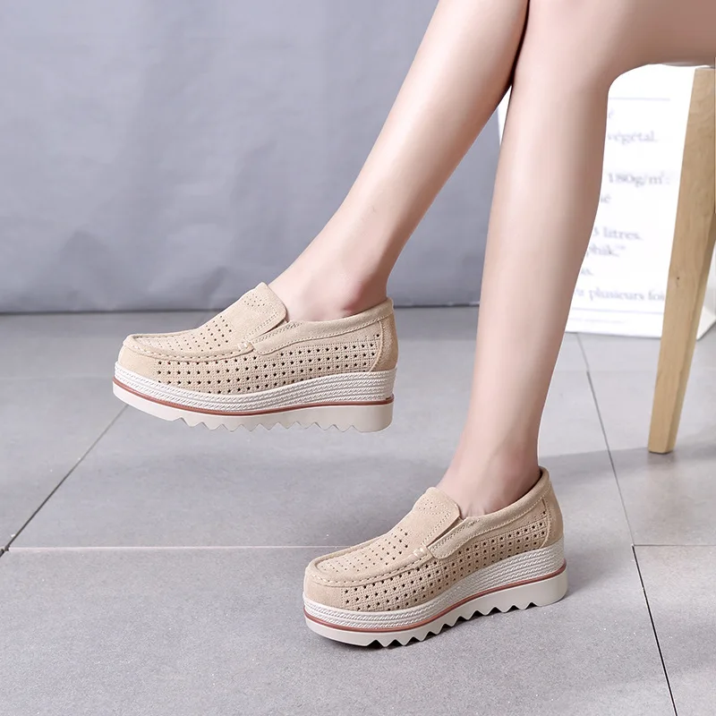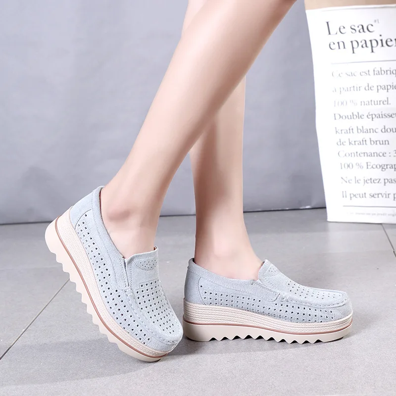 Мокасины женские кожаные, кроссовки на платформе, без застежки, плоская подошва, лоферы, повседневная женская обувь с толстой мягкой подошвой, весна 2019