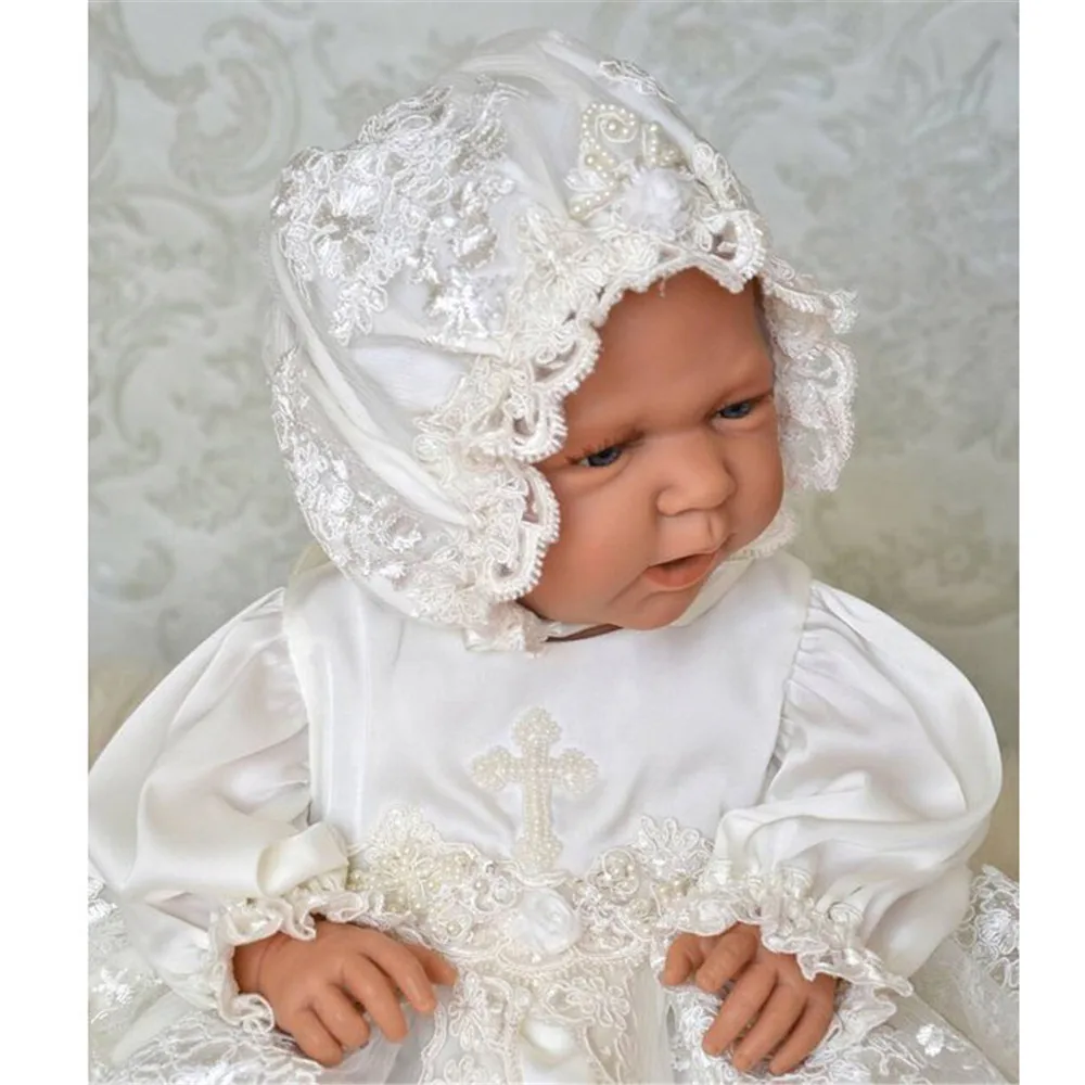 Платье детское кружевное длинное, Тюлевое, для крещения, с повязкой на голову, белое, цвета слоновой кости, для маленьких девочек