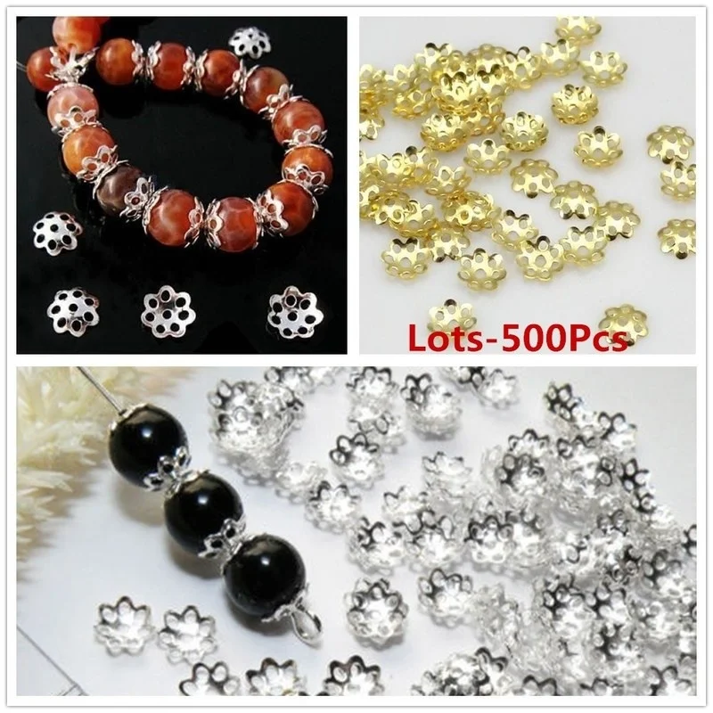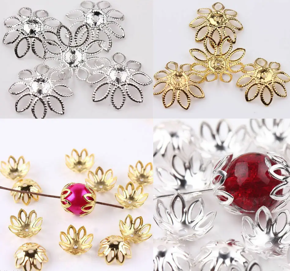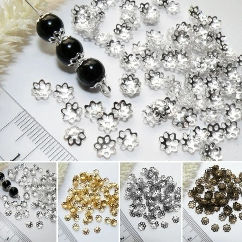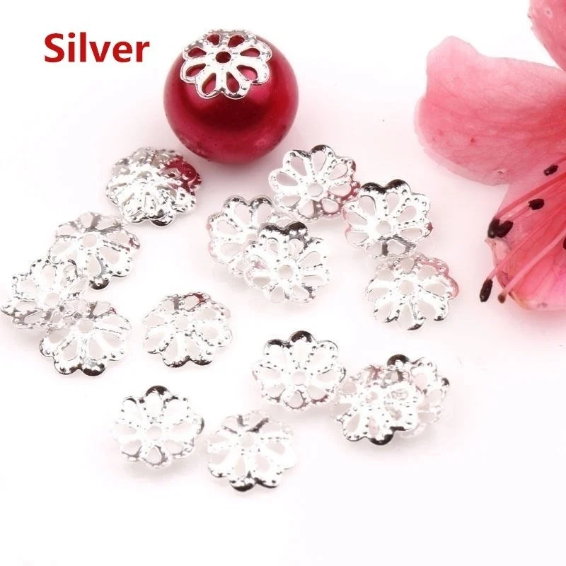 Оптовая продажа, 500 шт.лот, посеребренные, позолоченные, 6 мм, металлическая филигрань цветок, фурнитура для самодельных бусин, для изготовления ювелирных изделий