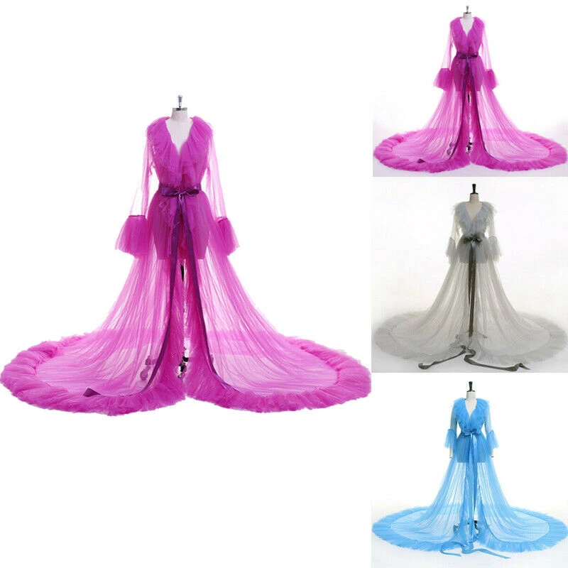 Соблазнительные женские сетчатые тюлевые халаты, платье, летнее однотонное многослойное платье на шнуровке, одежда для сна, женская прозрачная длинная ночная рубашка, нижнее белье