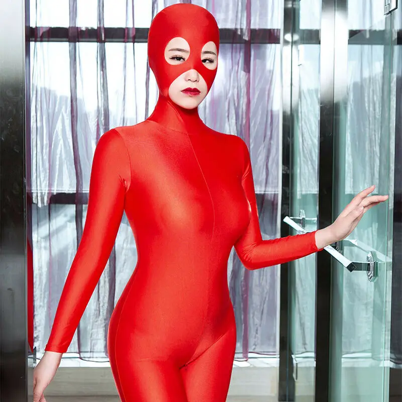Женский комбинезон Zentai из лайкры с открытыми глазами, носом и молнией