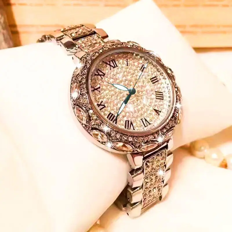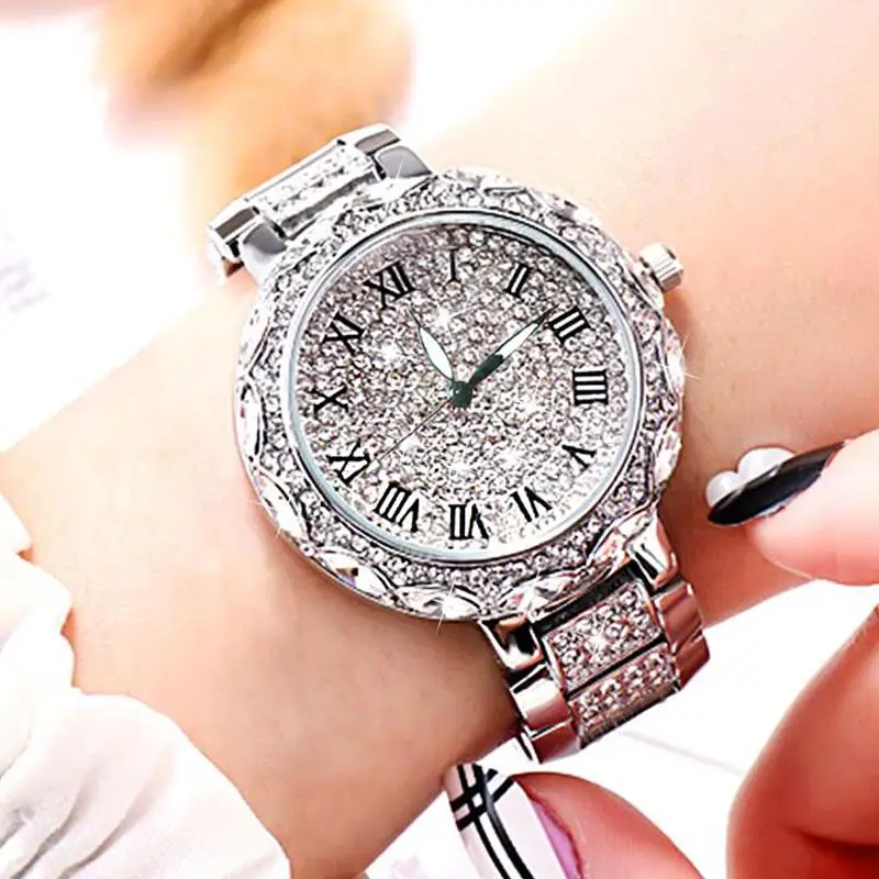 Роскошные женские серебряные часы с бриллиантами из нержавеющей стали Кварцевые наручные часы женские часы с циферблатом в римском стиле элегантные часы Reloj Mujer