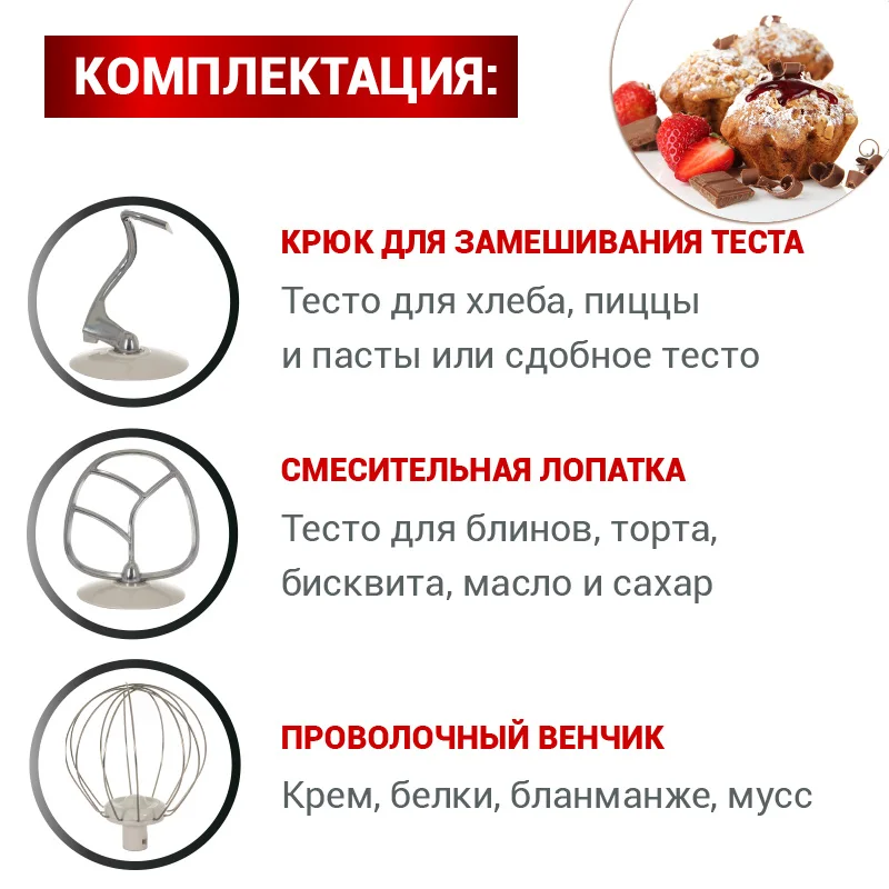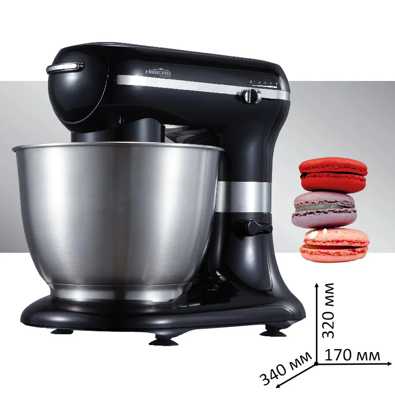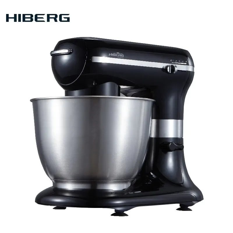 Планетарный миксер HIBERG MP 1255 B, 5.5 литра чаша из нержавеющей стали, 6 режимов, мощность 1200 Вт, венчик из нерж.стали