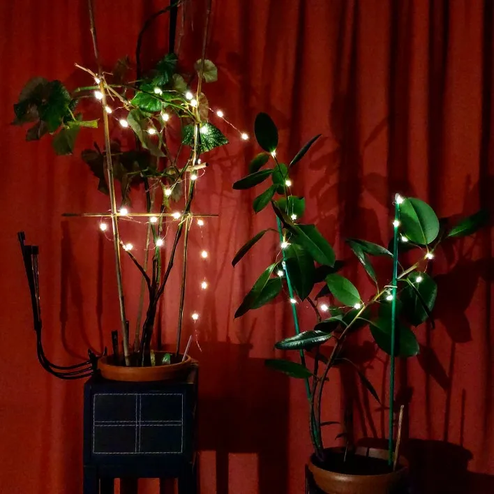 Гирлянда светит очень слабенько. Брала для фотосъемки, не советую, любой свет даже маломальский будет ее перебивать.