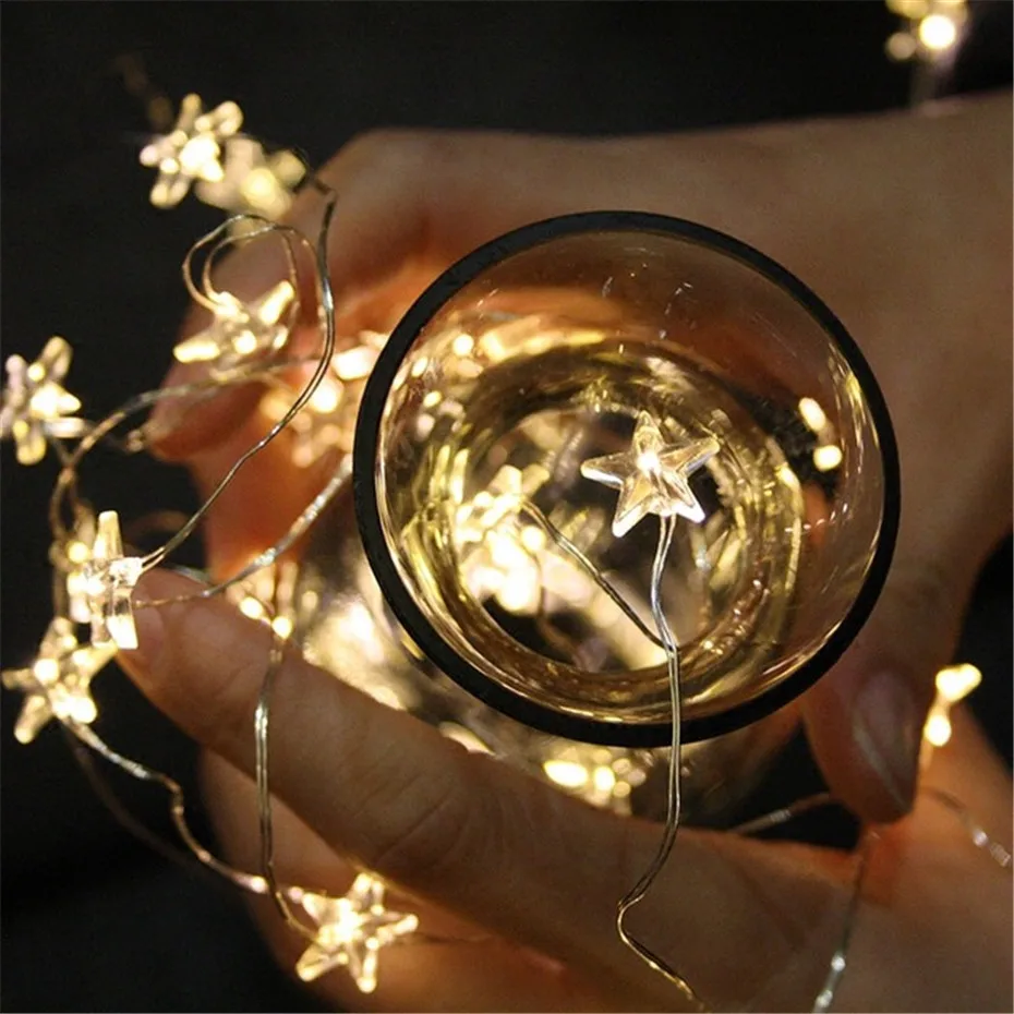 Декоративная светодиодная гирлянда в виде звезды, работает от батарейки AA, 4 м, медсветильник гирлянда, Декоративная гирлянда Рождественская Снежинка для спальни Вечерние