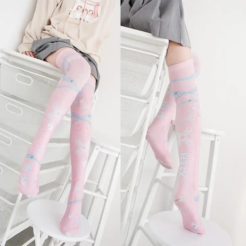 Колготки в японском стиле с рисунком аниме, розовые колготки с мультяшным принтом для девочек, Лолита, бархатные колготки, чулки для косплея 5SW06