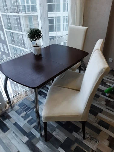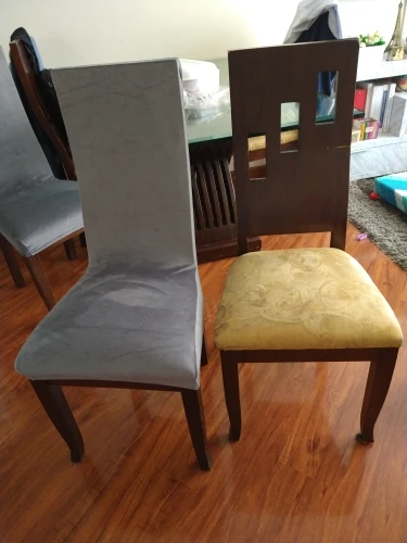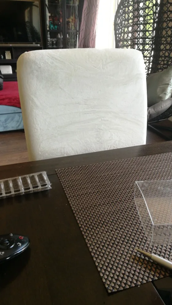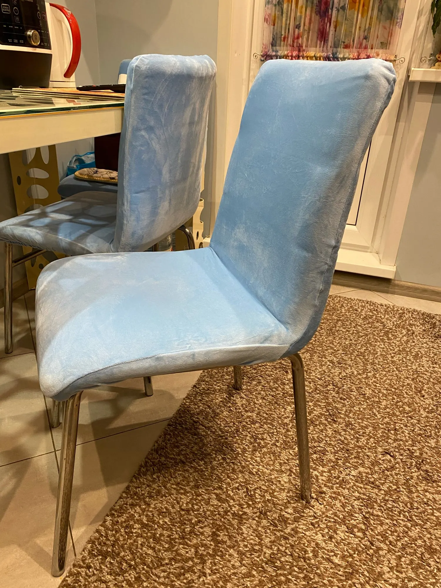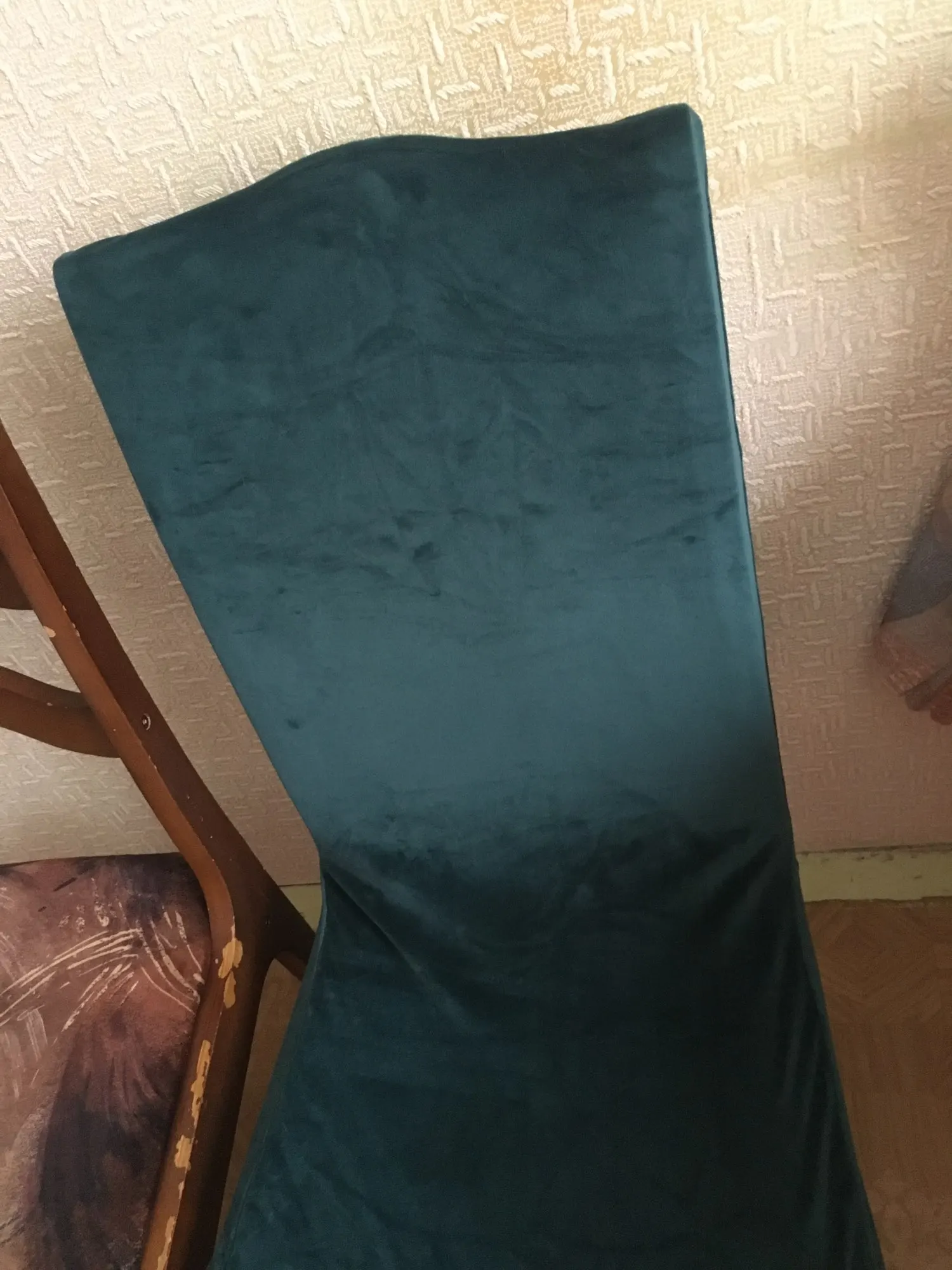 Очен классные чехлы, мягкие, приятные на ощупь, хорошо садятся, хорошо сшиты. Ткань отлично тянется, плотная, не просвечивает. Боялась, что будут большие, так как спинка не высокая, но все хорошо! Продавец сказал, что подойдут. Цвет очень красивый и вообще, стулья обрели новую жизнь. Очень осталась довольна! Обязательно закажу ещё в другом цвете для разнообразия. Берите, не разочаруетесь!