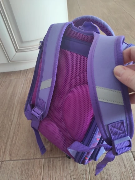 Классный портфельчик. Для первоклашки самое то, не громоздкий. Со светоотражающими вставками. Пришёл за 2 недели.