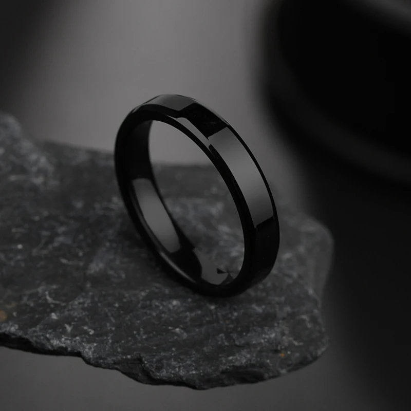 Auxauxme 4 мм Простые Кольца из титановой нержавеющей стали черные обручальные кольца для женщин и мужчин полированные ювелирные изделия оптом