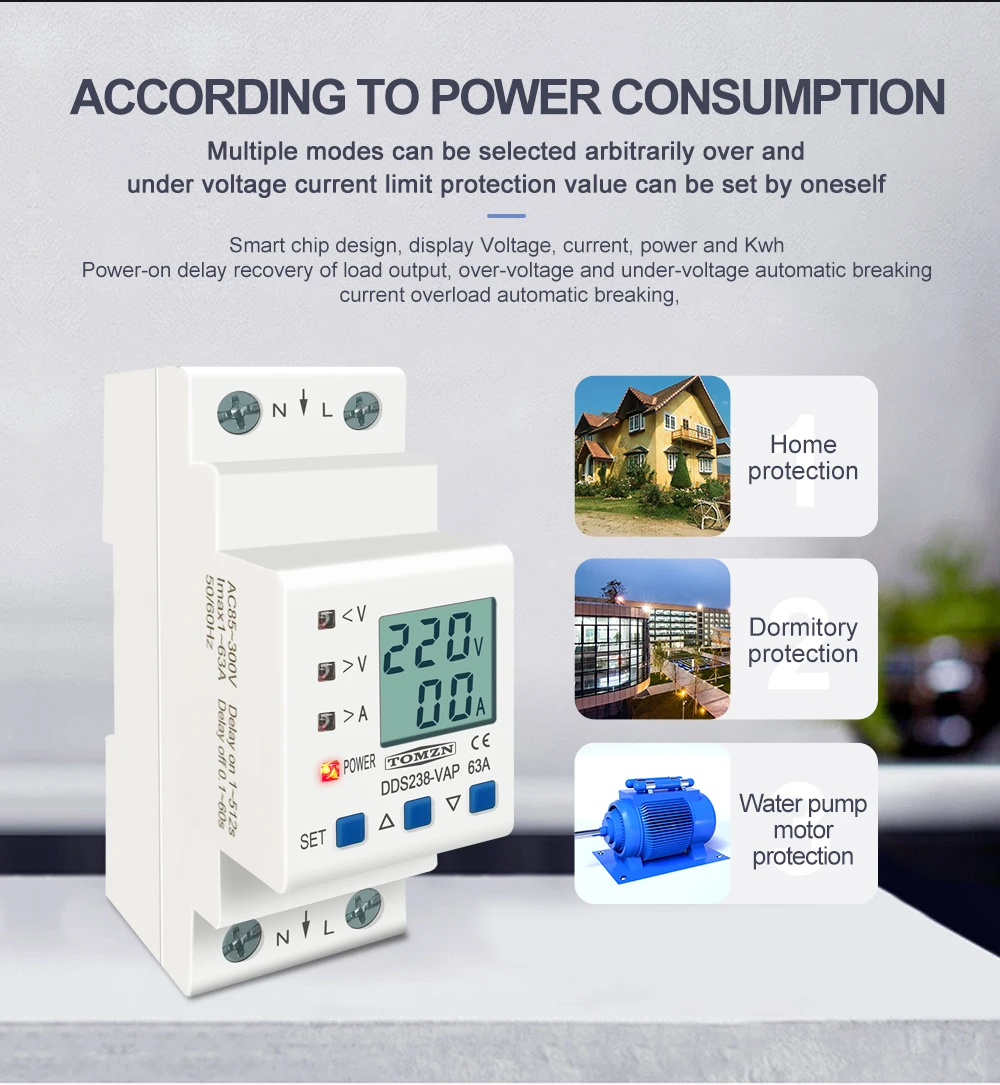 Вольтметр регулируемый под напряжением 110 А, 230 В, защитное устройство предохранитель в, на Din-рейку