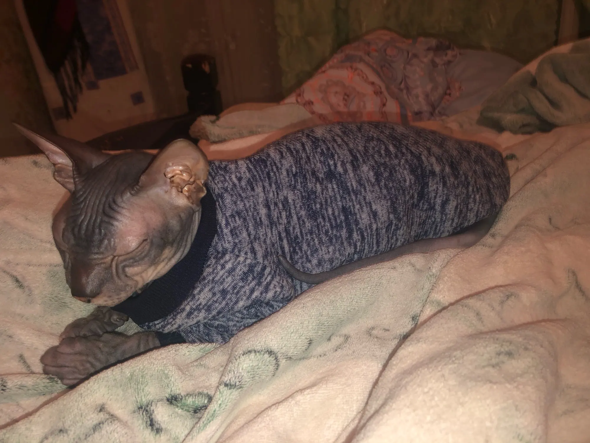 Рукава я распорола и ниточки обработала огнём, тк шовчик был не очень качественным. Идеально было бы заказать на размер больше, котёнок весит 3.5. Надеваю кофту на ночь, чтобы тепло было. Подкладка у кофты есть, синтетическая, как вата. Днём снимаю, потому что он малоподвижен в кофте, но прыгать, бегать, ходить в ней может.