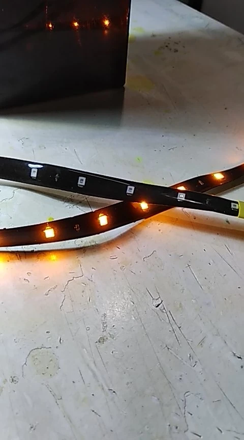 Небольшое количество диодов (отсуда и не большая яркость) припаяны криво, но все работает.