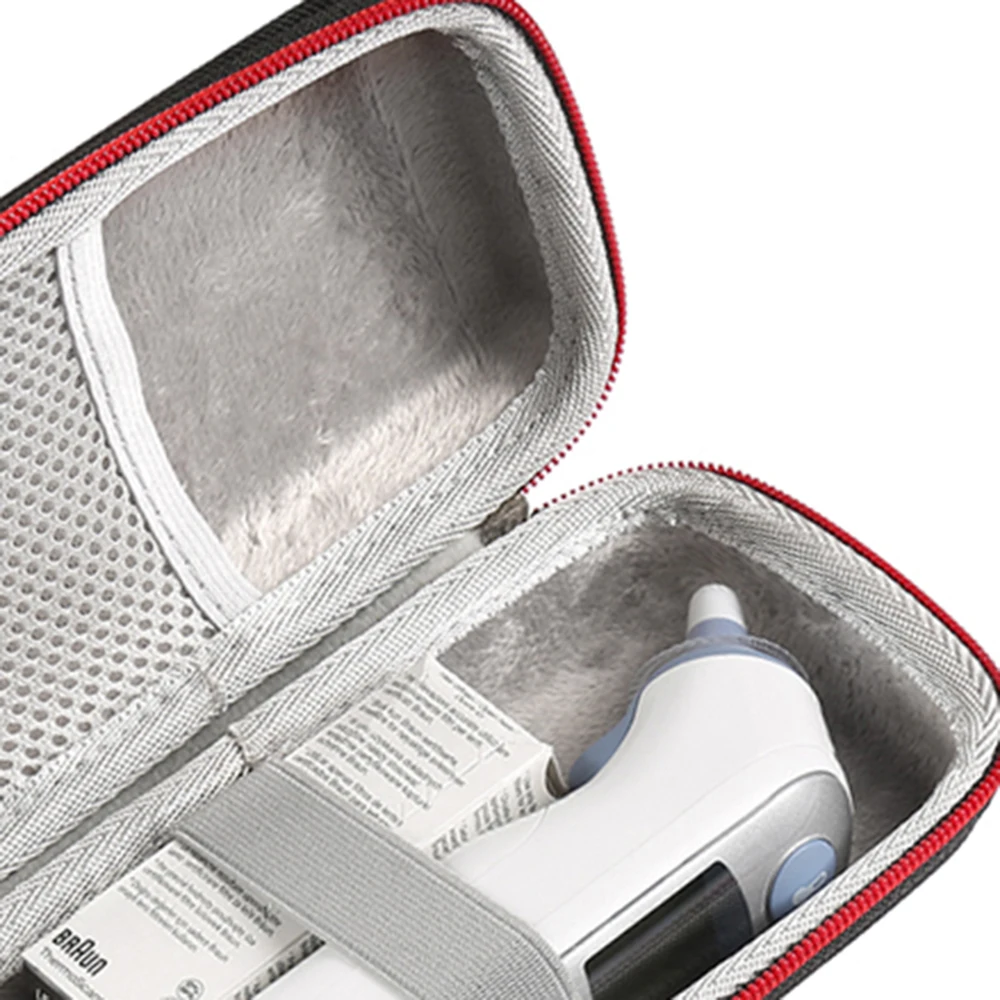 4. Удобный дизайн: устойчивый ручной ремешок для портативности, внутренняя конструкция идеально подходит для цифрового ушного термометра Braun, гладкая, но прочная застежка-молния на 360 градусов для легкого открытия и закрытия.