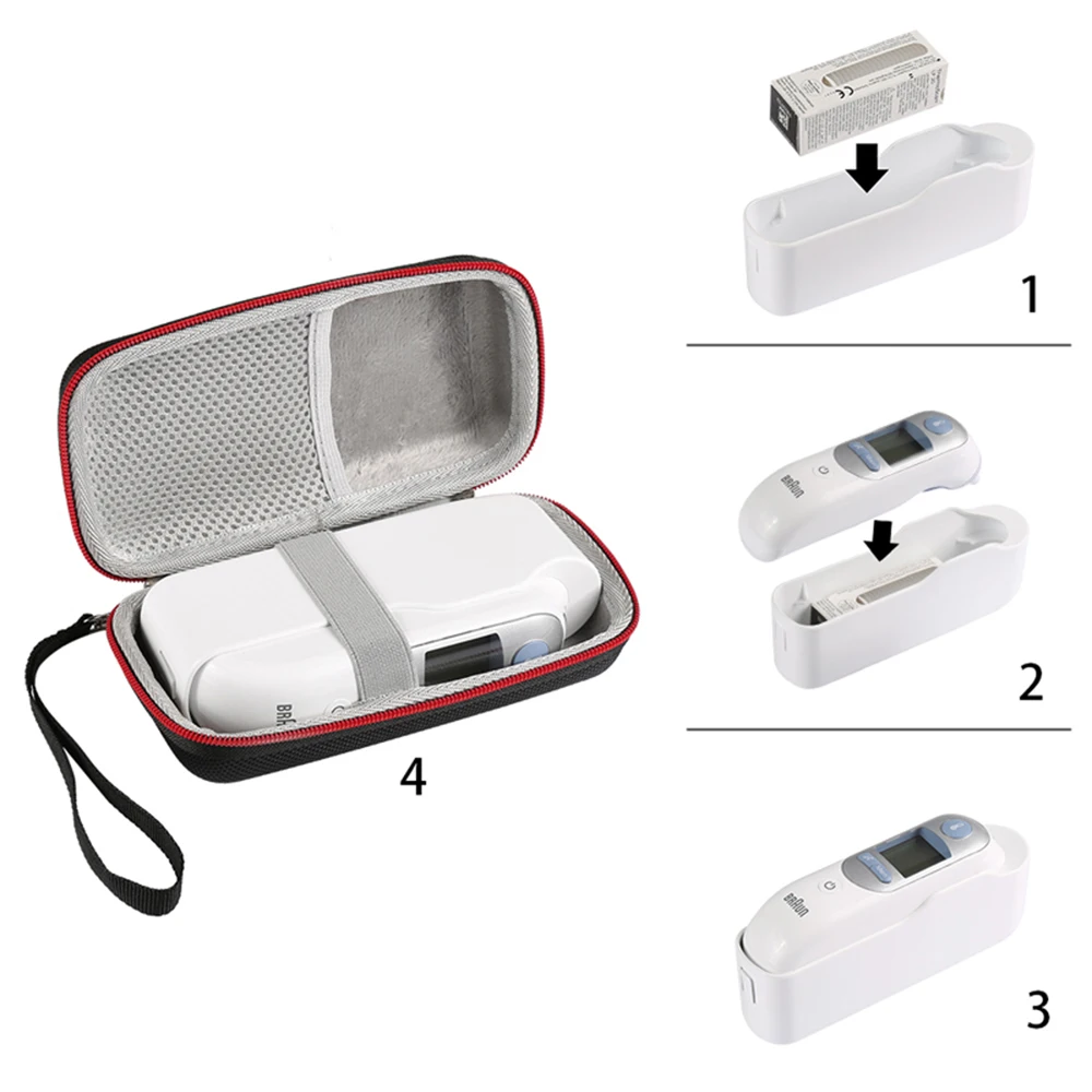 2. 100% безопасность: Жесткий качественный материал EVA является полуводонепроницаемым, противоударным и прочным для защиты вашего цифрового ушного термометра Braun от ударов и брызг.