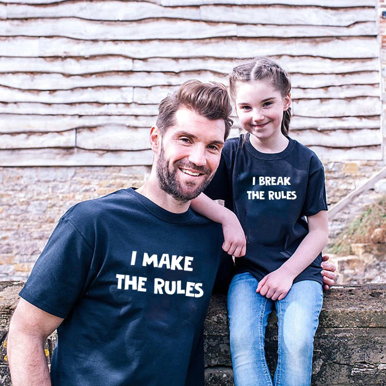 I Make The Rules and I Break The Rules, одинаковые футболки для всей семьи для папы и ребенка одежда для мальчиков и девочек топы, повседневные футболки