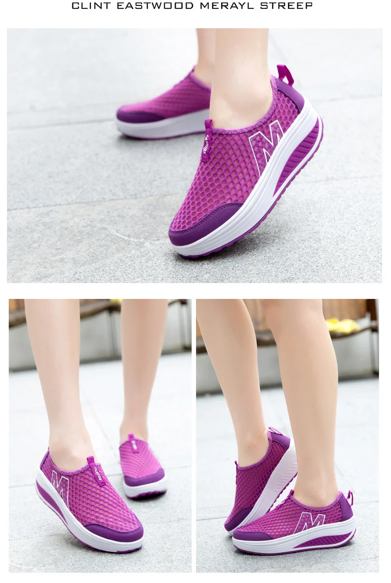 Женские туфли-качалки на платформе, дышащие легкие кроссовки с перф...