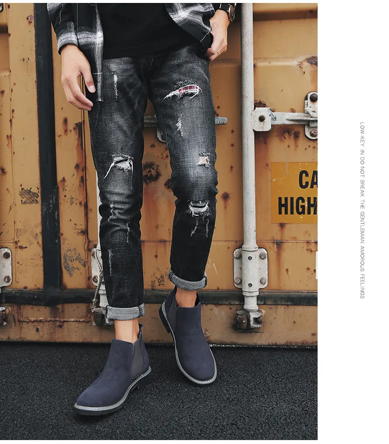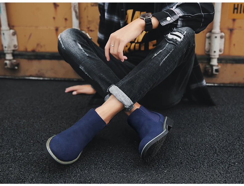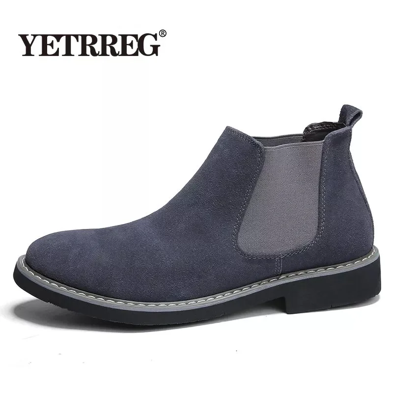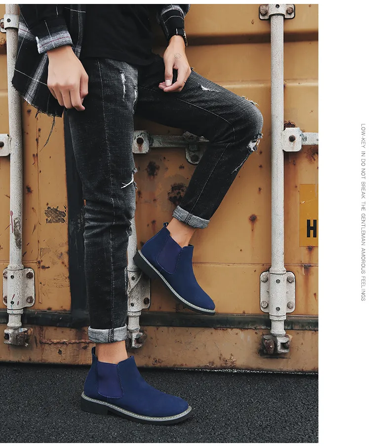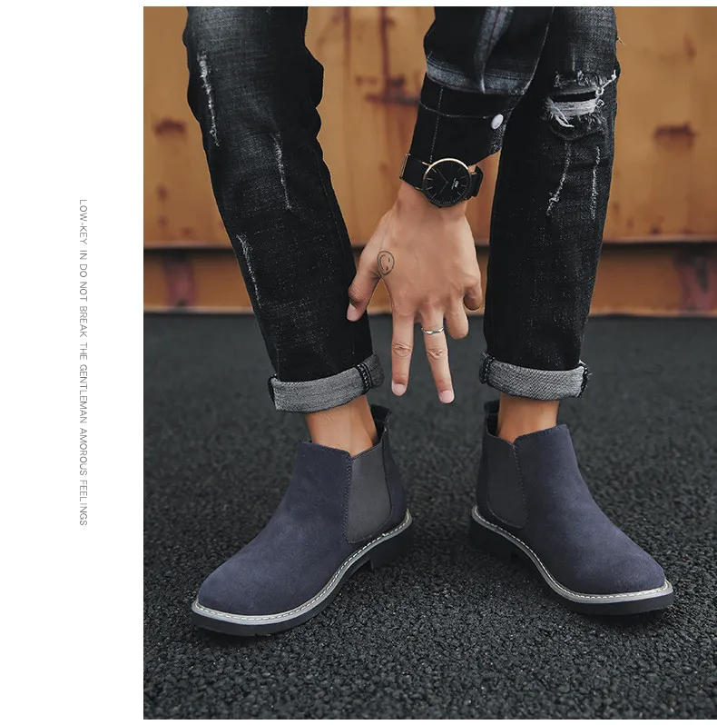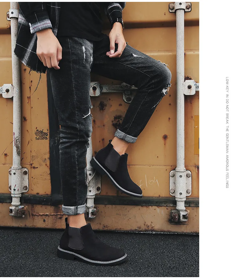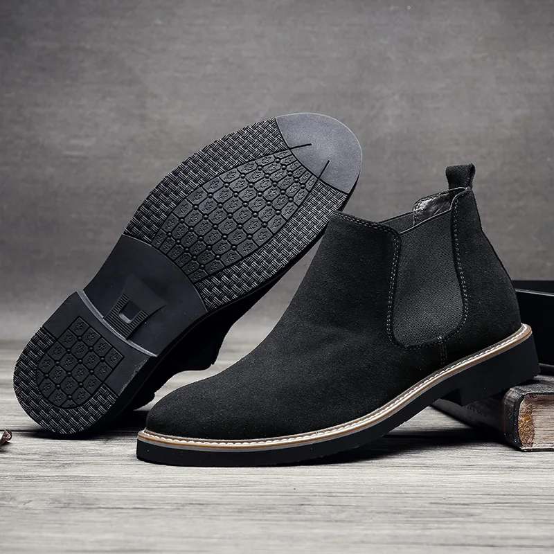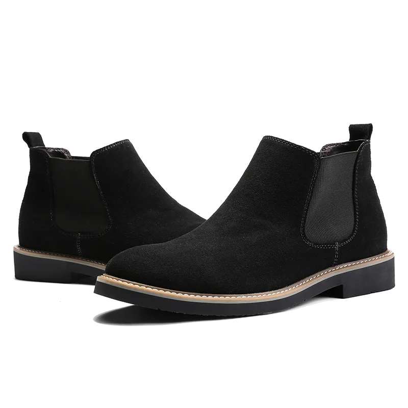 Мужские ботинки челси, коричневые ботильоны из коровьей замши, без застежек, теплые мотоциклетные ботинки, большой размер 46, 2019