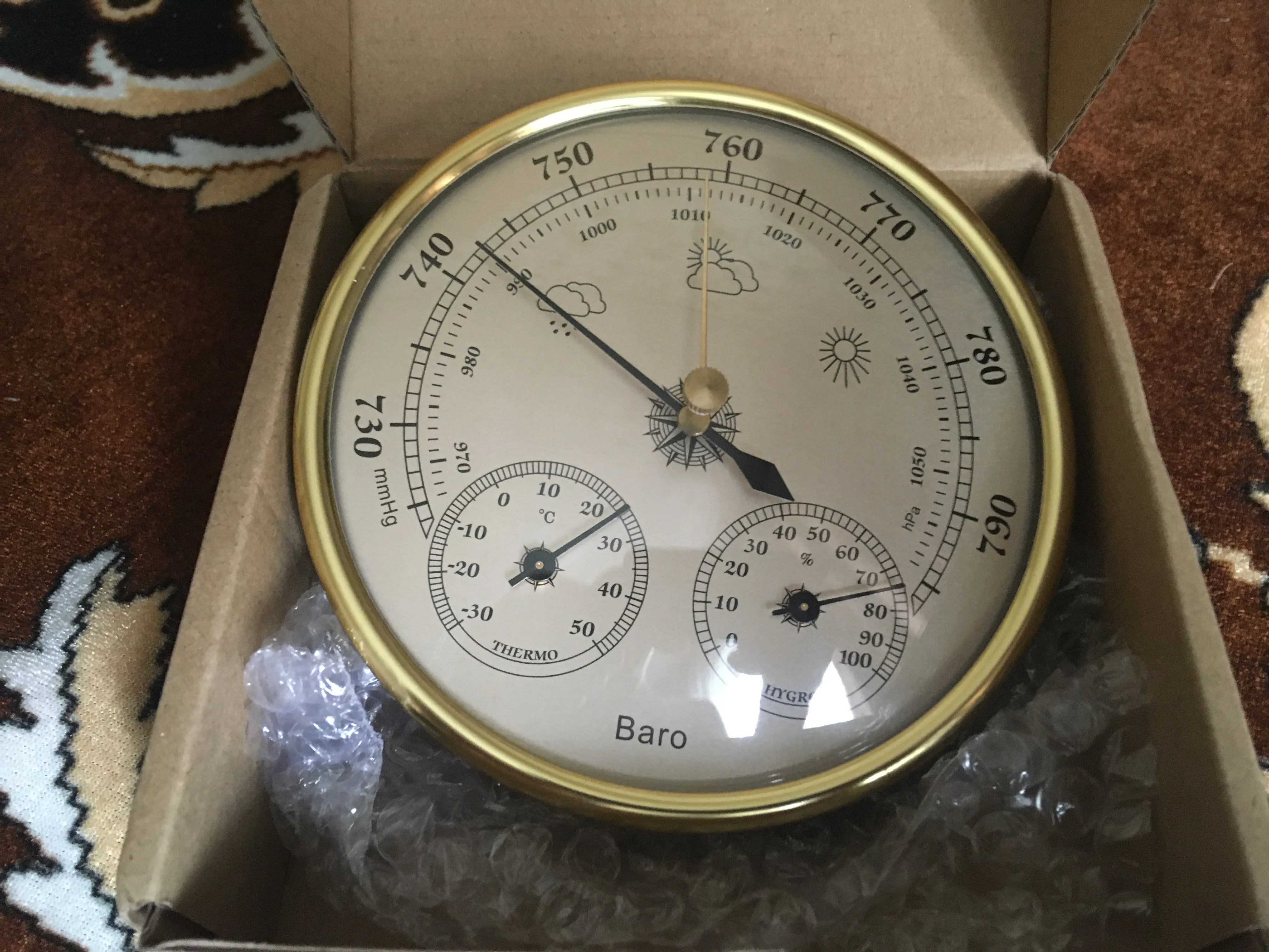 Трек прослеживался до дома. Доставка - 19 дней в ЦФО. Упаковано хорошо, упаковка не повреждена. Большие претензии к продавцу, который отправил бракованный товар даже не проверив его состояние. На фото видно что основная стрелка барометра зацеплена за ось стрелки гигрометра. При транспортировке так невозможно сделать даже если его стучать без остановки. Результат - бесполезность прибора. Спор не стал открывать, но решил наказать рейтингом и отзывом. Пришлось расклеивать прибор и расклинивать стрелку, процесс довольно сложный оказался. Теперь как будет в работе, покажет время. Заказывать или нет у этого продавца решать вам, я сделал свои выводы.