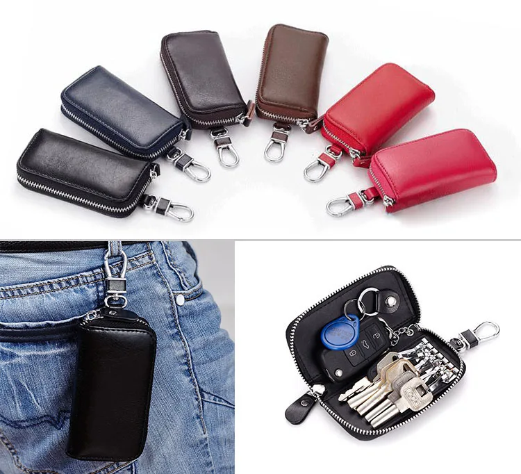 Мужской и женский автомобильный держатель для ключей, кошельки из коровьей кожи, ключница для карт, чехол на молнии, органайзер для ключей, сумка для денег HSJ88