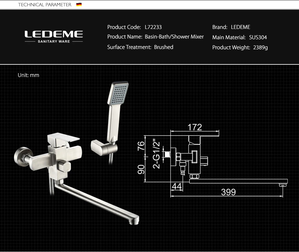 Смеситель для душа LEDEME L72233, кран из нержавеющей стали для ванны, настенный, насадка для душа