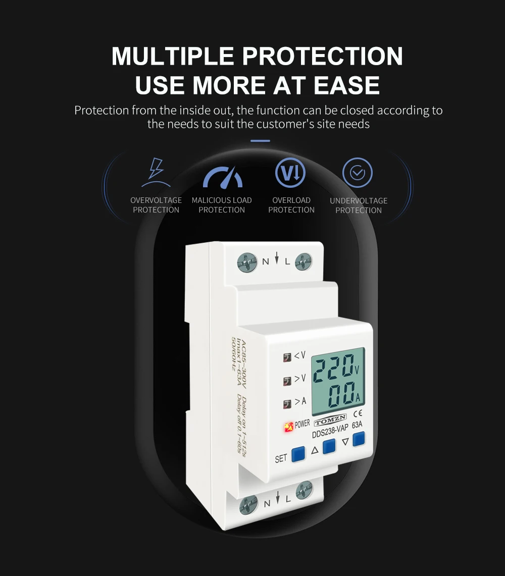 63a, 80A, 110 В, 230 В, Din-рейка, регулируемый под напряжением, , предельная защита тока, вольтметр кВтч