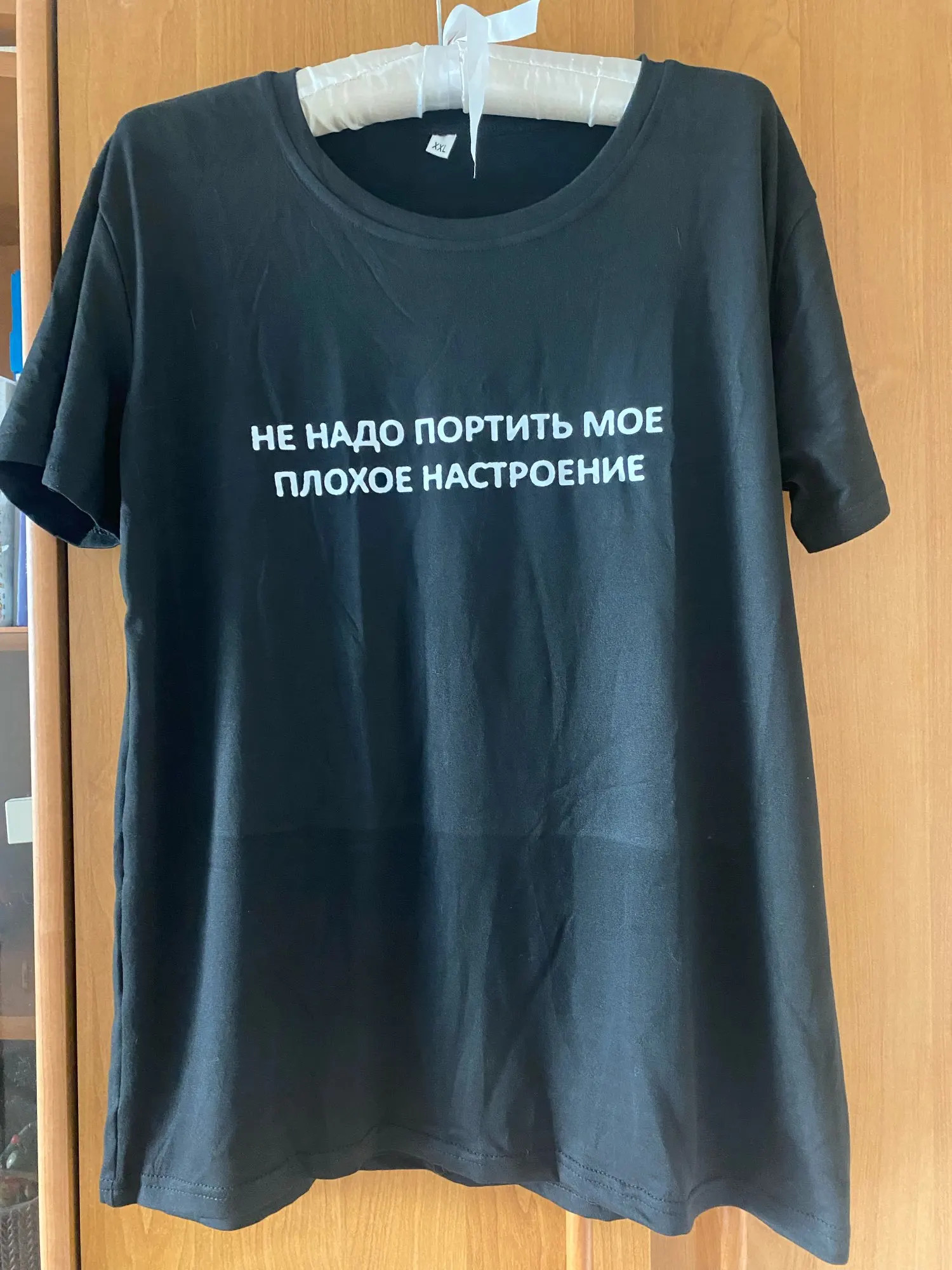 Футболка женская с принтом на русском языке, Повседневная рубашка с...