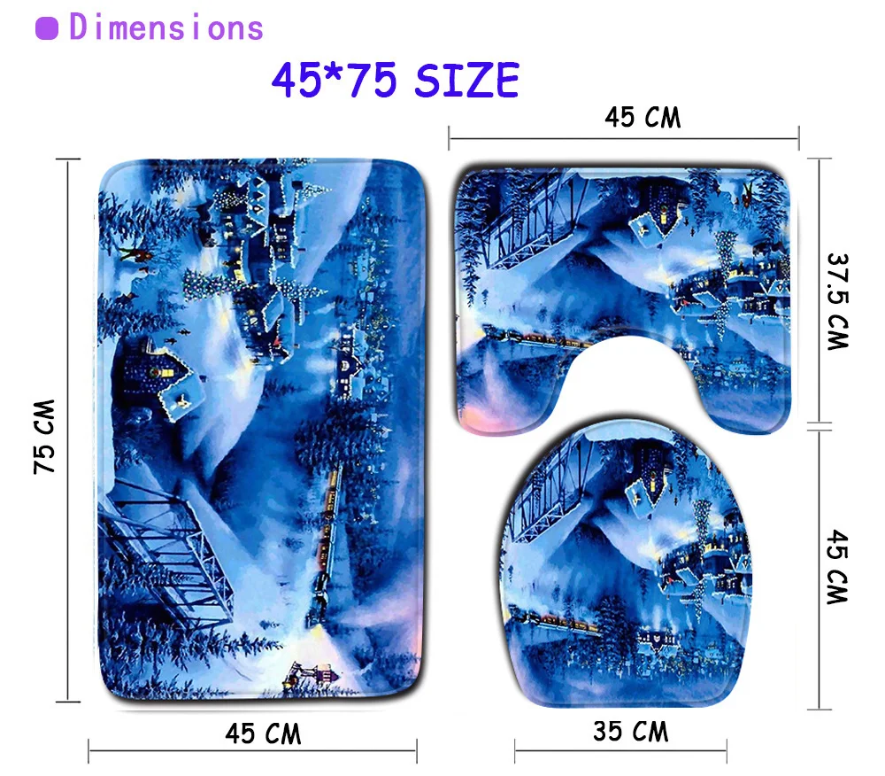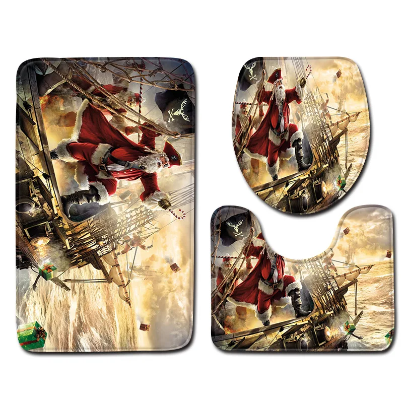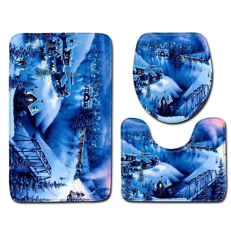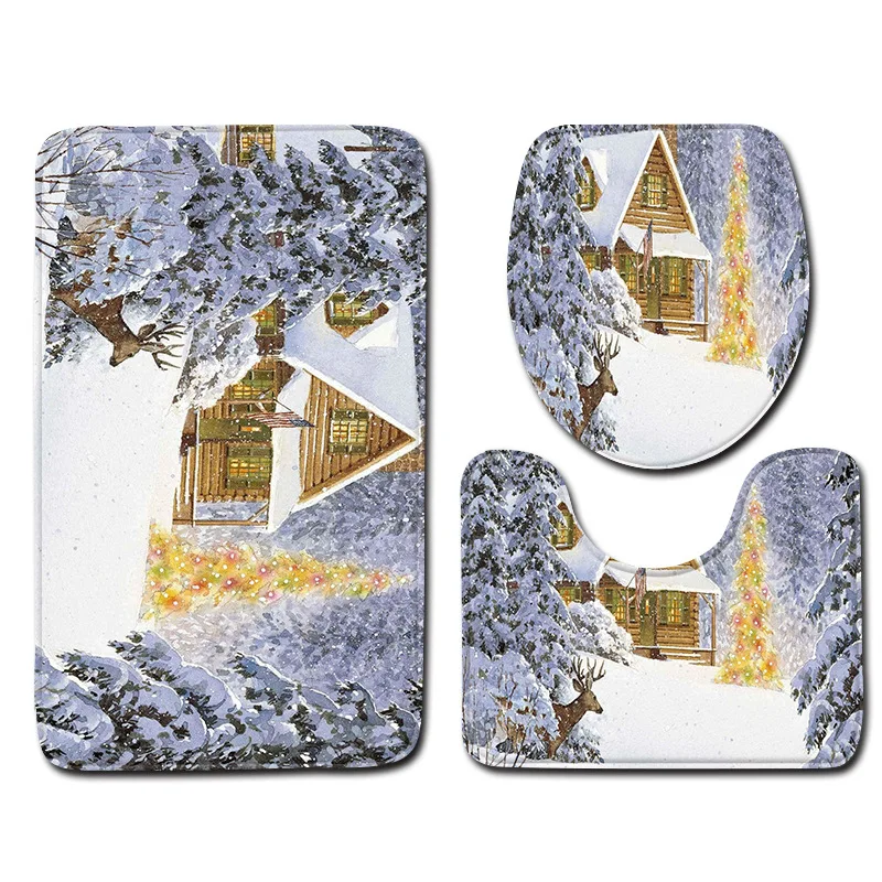 Рождественские аксессуары для ванной комнаты, набор из 3 ковриков для ванной, нескользящий коврик для спальни, набор ковриков для туалета, противоскользящий ковер