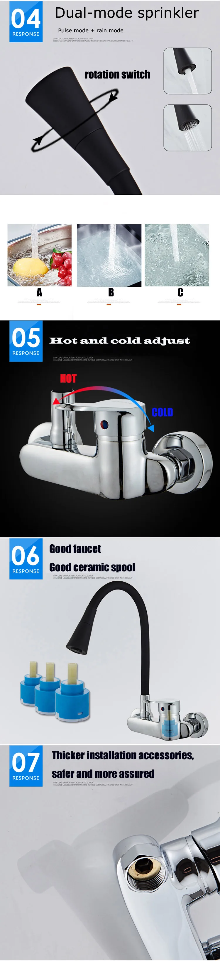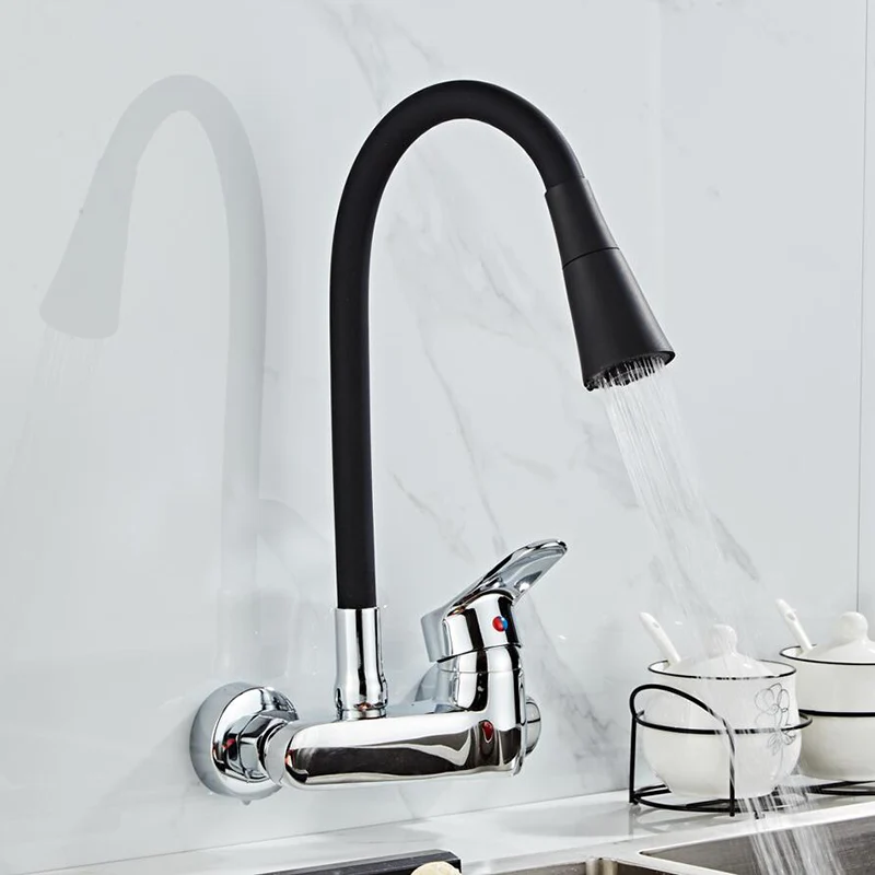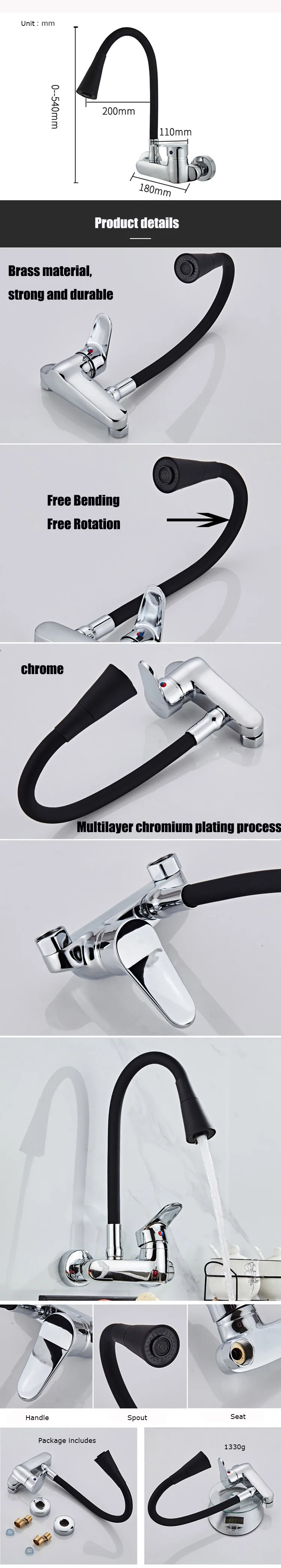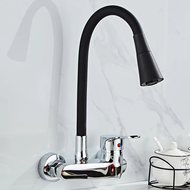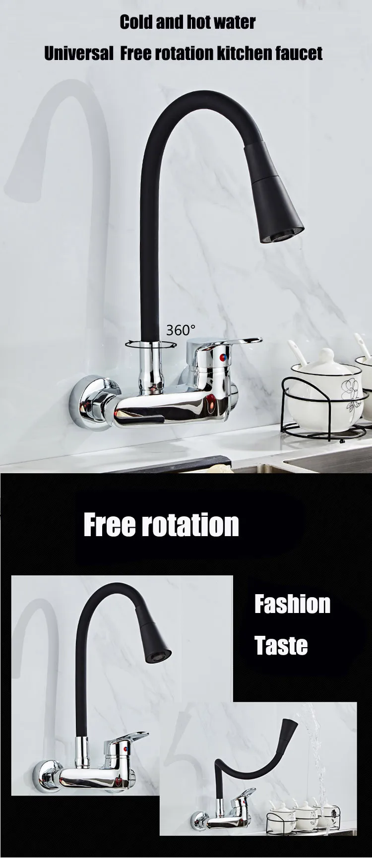 Настенный кухонный кран с одной ручкой, кухонные краны с двумя отверстиями, кран для горячей и холодной воды, вращение на 360 градусов