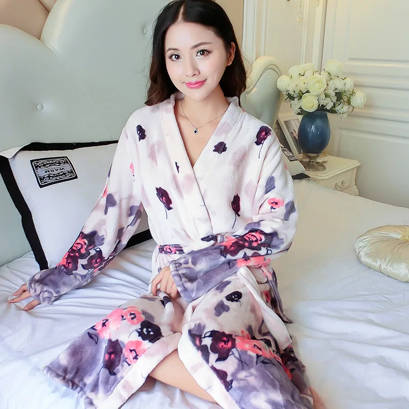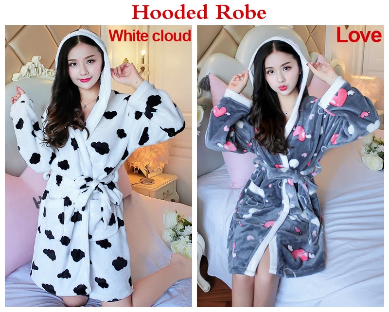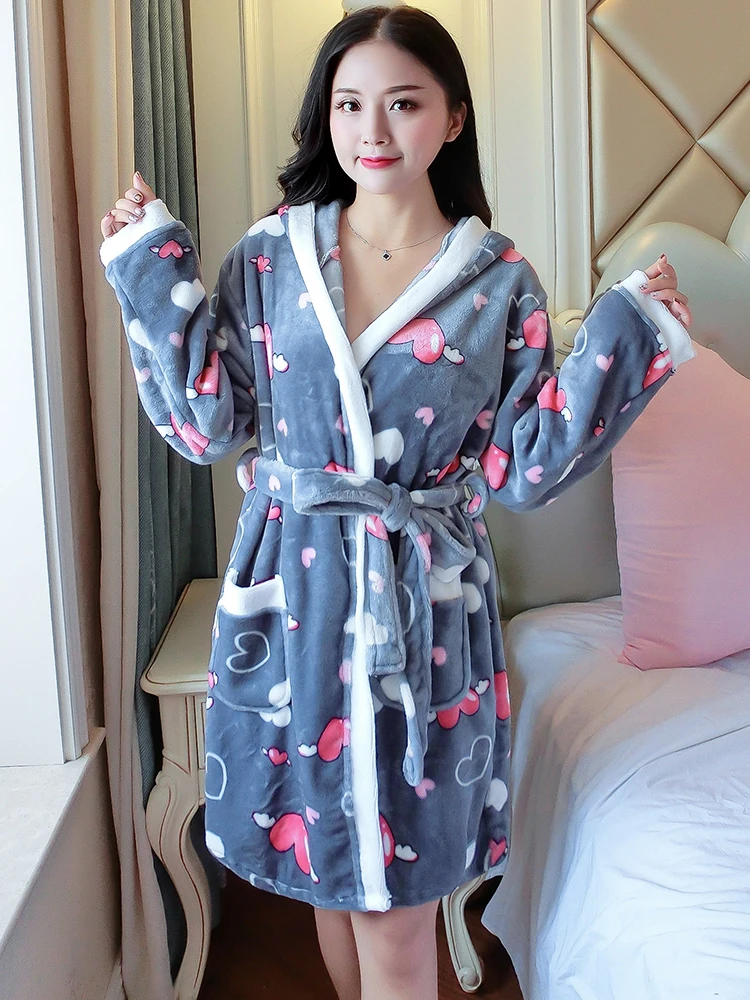Мультяшные милые утепленные ночные рубашки, зимний халат, женская пижама, банный фланелевый теплый халат, одежда для сна, женские халаты, коралловый бархат