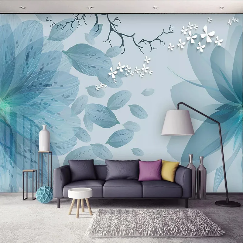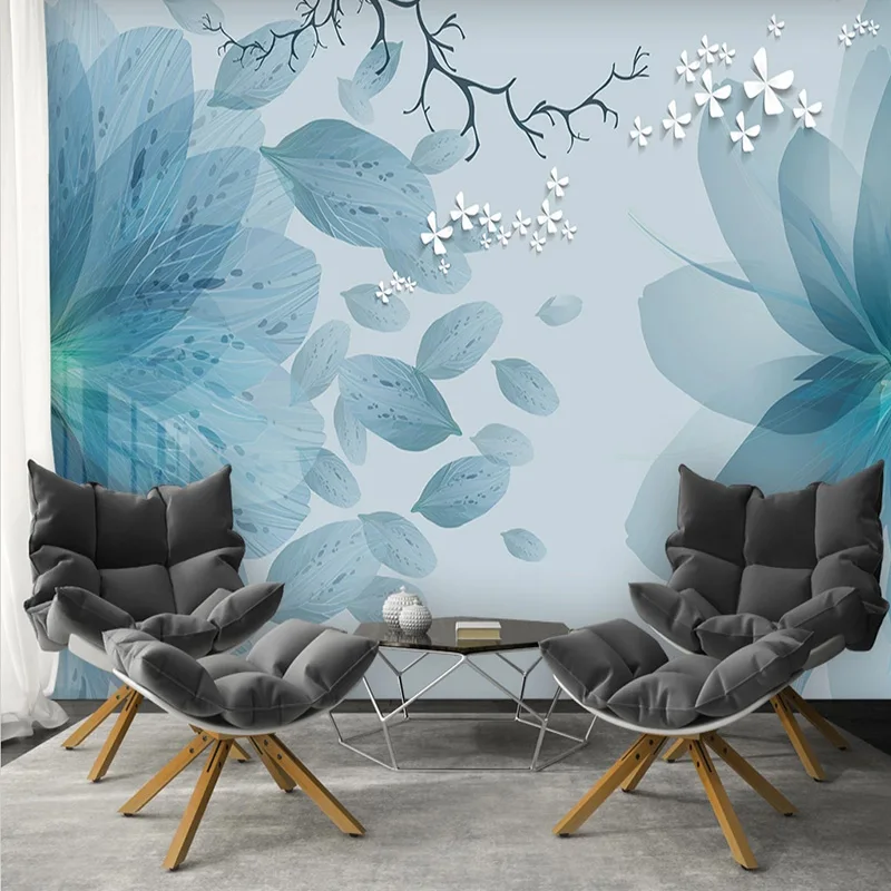 Современные обои 3D синие цветы Бабочка фото настенные фрески Гостиная ТВ спальня романтический домашний декор самоклеящиеся наклейки