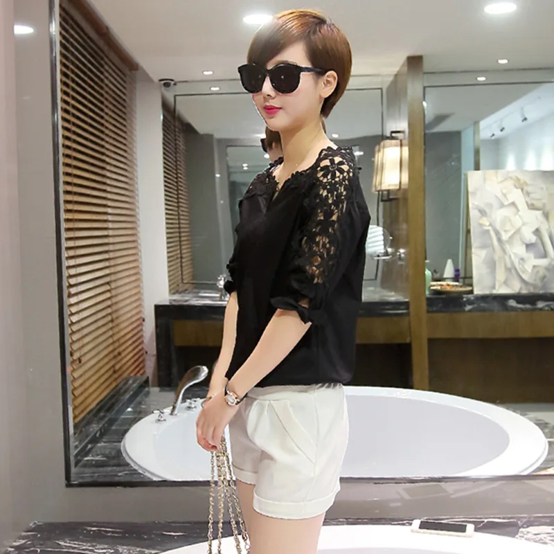 Блузка женская кружевная с цветочным принтом, модная пикантная рубашка без рукавов, белый, черный, розовый цвет, на выход