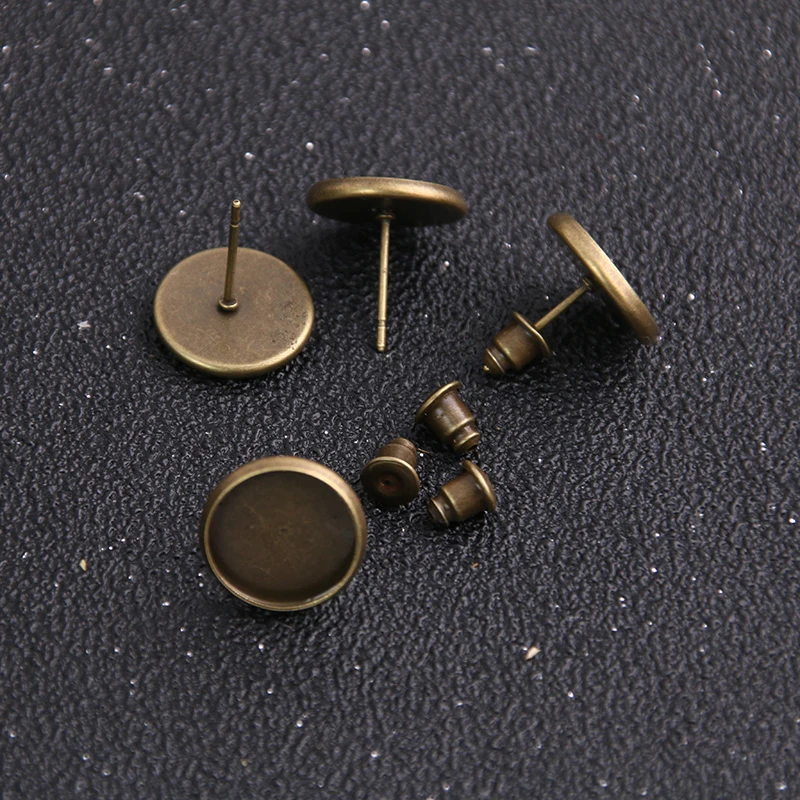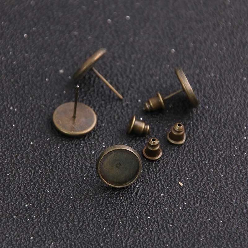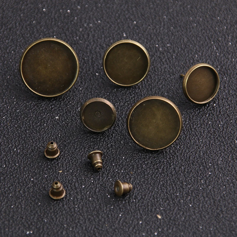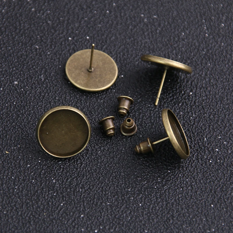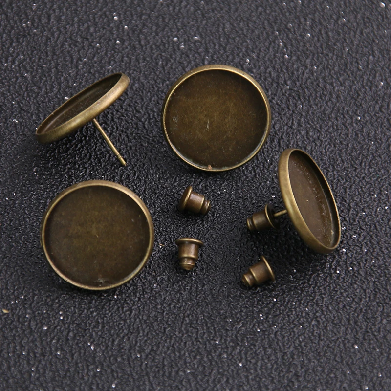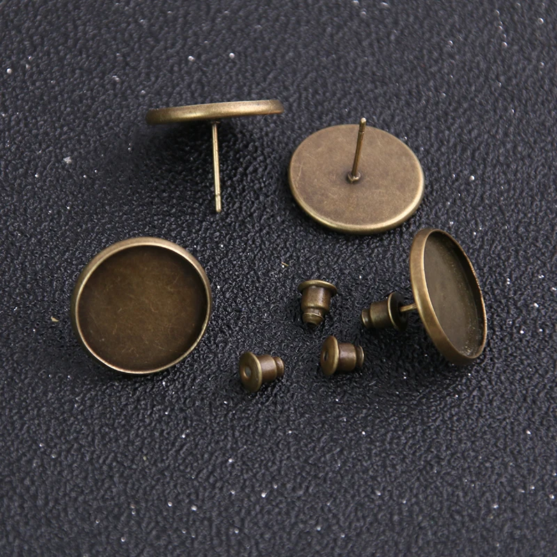 30 шт., 10/12/14/16/18 мм Винтаж Регулируемый серьги-гвоздики в виде основания + ушной пинцет-заготовок из античной бронзы, с кабошоном серьги-гвоздики