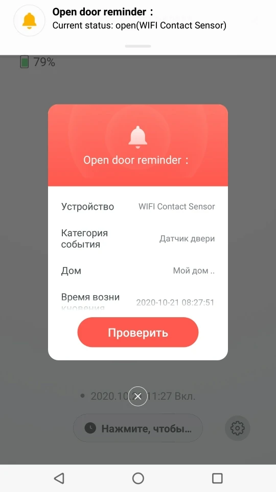 Работает отлично. Датчик подключен к сети Wi-Fi и показывает открытые, закрытые сообщения. Больше ничего не требуется.