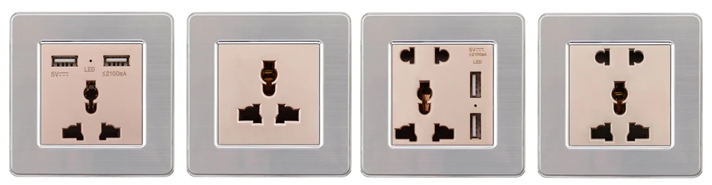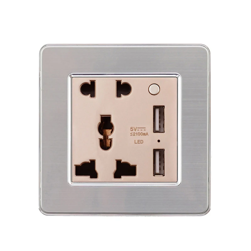 Электрическая розетка с двумя USB-портами и алюминиевой панелью